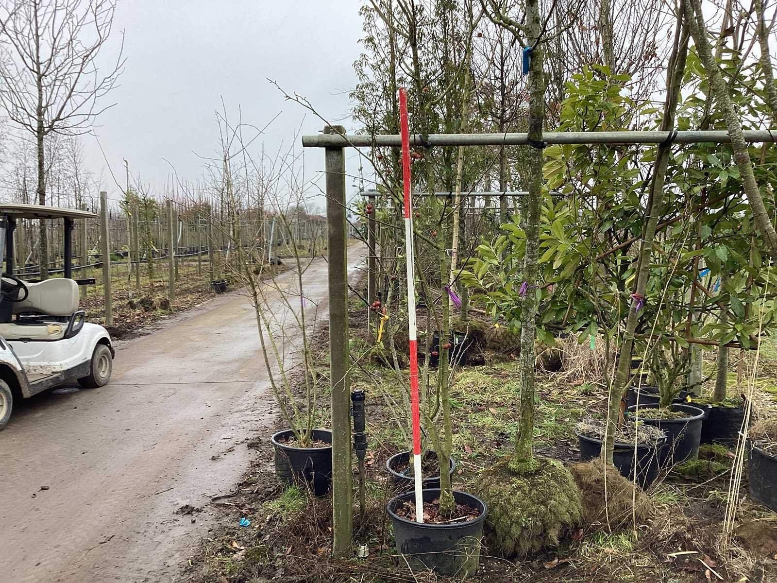 De kavels worden door ons verzameld en klaargelegd voor transport; Wilt u gebruik maken van de bezorgservice neem dan contact op via het emailadres arina@groviatrees.com. Als tip, de bomen zitten nu in de winterrust dus wilt u graag weten wat de zomer- en de herfstkleuren zijn, kijk dan op internet daar staan hele mooie voorbeelden van de bomen. Voor overige vragen bel 0645641495 of 0633049344 Type: Rode sierappel Latijnse benaming: Malus red sentinel Hoogte ca.: 300cm In pot: true Stamdikte: 15cm