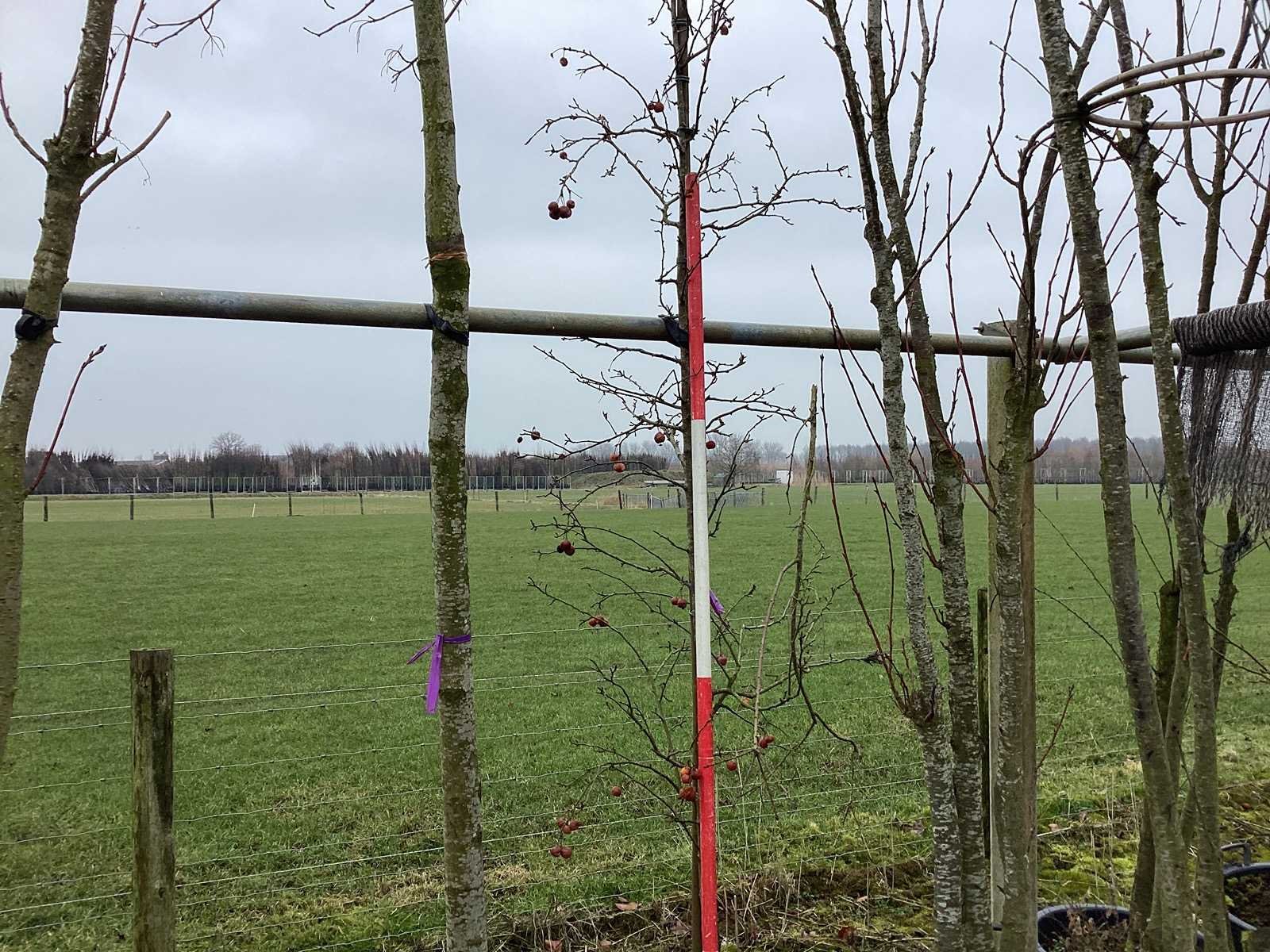 De kavels worden door ons verzameld en klaargelegd voor transport; Wilt u gebruik maken van de bezorgservice neem dan contact op via het emailadres arina@groviatrees.com. Als tip, de bomen zitten nu in de winterrust dus wilt u graag weten wat de zomer- en de herfstkleuren zijn, kijk dan op internet daar staan hele mooie voorbeelden van de bomen. Voor overige vragen bel 0645641495 of 0633049344 Type: Rode Sierappel Latijnse benaming: Malus red sentinel Hoogte ca.: 350cm Met kluit: true Stamdikte: 12cm