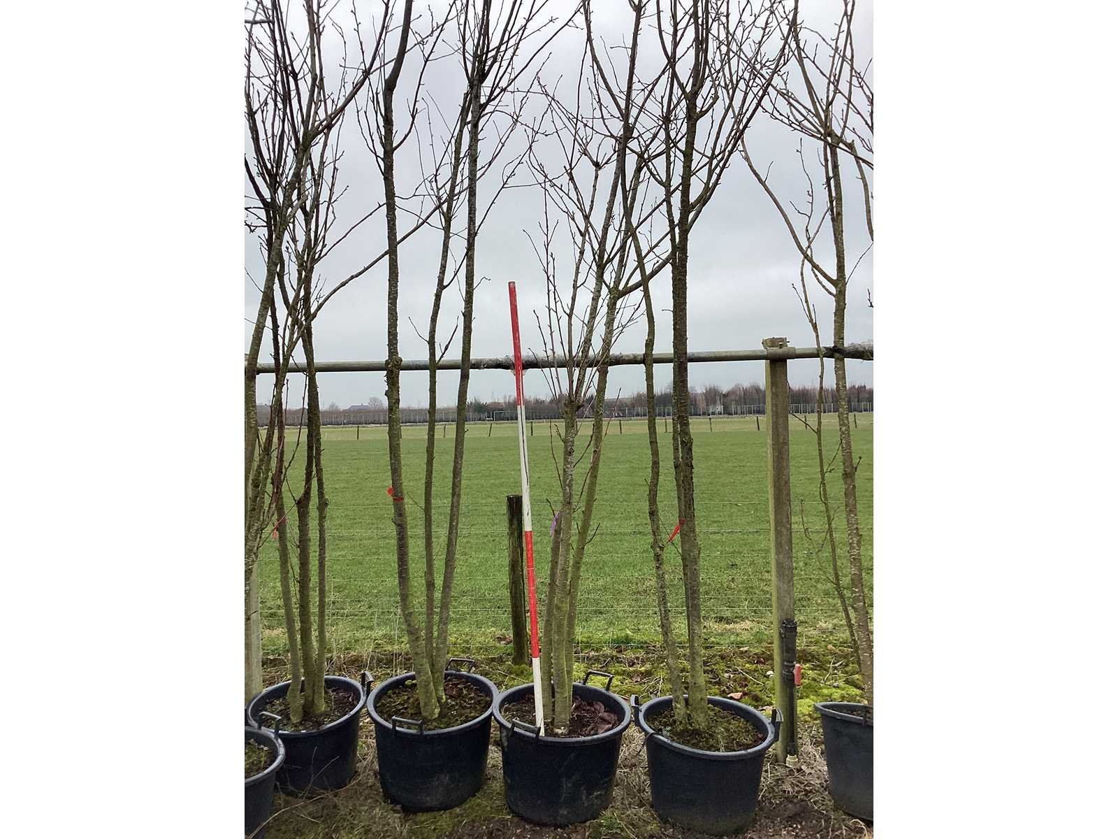 De kavels worden door ons verzameld en klaargelegd voor transport; Wilt u gebruik maken van de bezorgservice neem dan contact op via het emailadres arina@groviatrees.com. Als tip, de bomen zitten nu in de winterrust dus wilt u graag weten wat de zomer- en de herfstkleuren zijn, kijk dan op internet daar staan hele mooie voorbeelden van de bomen. Voor overige vragen bel 0645641495 of 0633049344 Type: Japanse Sierkers Latijnse benaming: Prunus kanzan Hoogte ca.: 400cm In pot: true Stamdikte: 20cm
