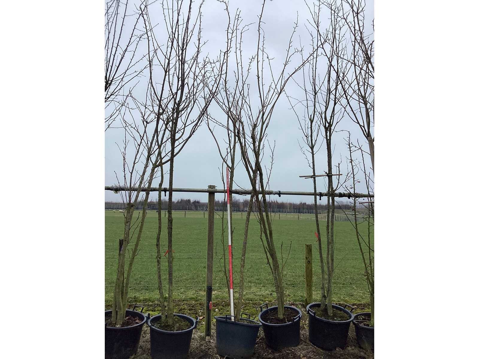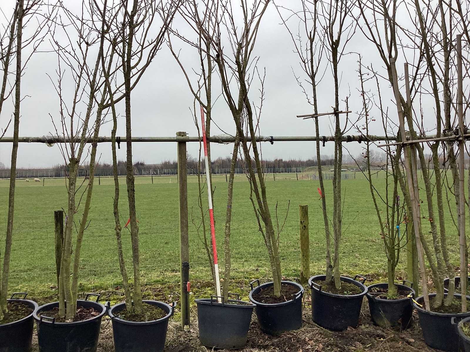 De kavels worden door ons verzameld en klaargelegd voor transport; Wilt u gebruik maken van de bezorgservice neem dan contact op via het emailadres arina@groviatrees.com. Als tip, de bomen zitten nu in de winterrust dus wilt u graag weten wat de zomer- en de herfstkleuren zijn, kijk dan op internet daar staan hele mooie voorbeelden van de bomen. Voor overige vragen bel 0645641495 of 0633049344 Type: Japanse Sierkers Latijnse benaming: Prunus kanzan Hoogte ca.: 450cm In pot: true Stamdikte: 16cm