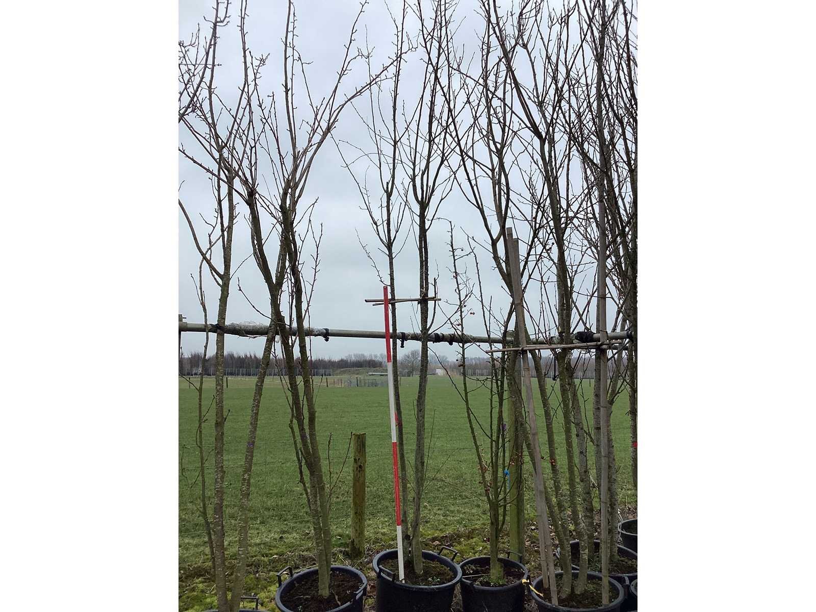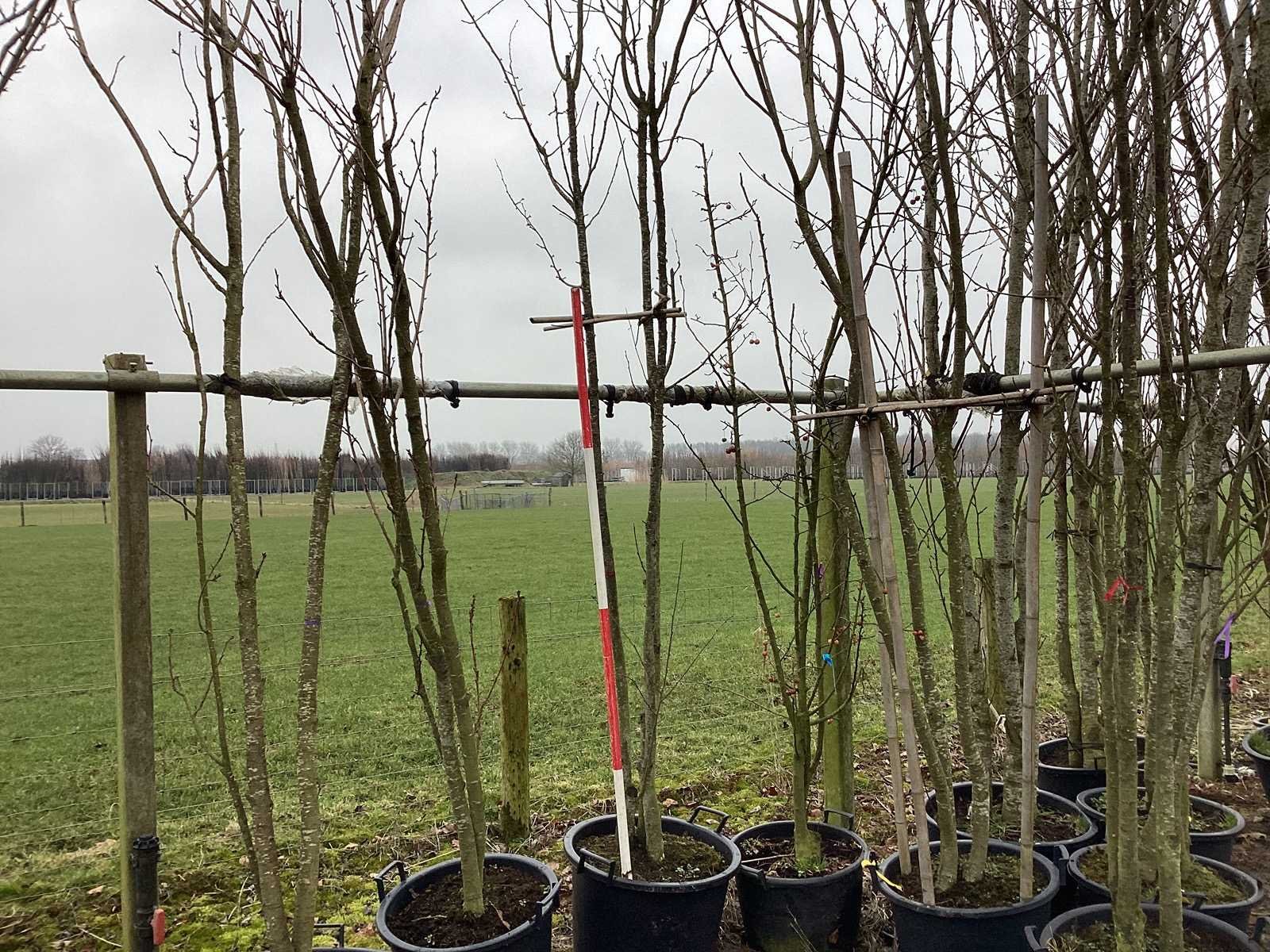 De kavels worden door ons verzameld en klaargelegd voor transport; Wilt u gebruik maken van de bezorgservice neem dan contact op via het emailadres arina@groviatrees.com. Als tip, de bomen zitten nu in de winterrust dus wilt u graag weten wat de zomer- en de herfstkleuren zijn, kijk dan op internet daar staan hele mooie voorbeelden van de bomen. Voor overige vragen bel 0645641495 of 0633049344 Type: Japanse Sierkers Latijnse benaming: Prunus kanzan Hoogte ca.: 450cm In pot: true Stamdikte: 20cm