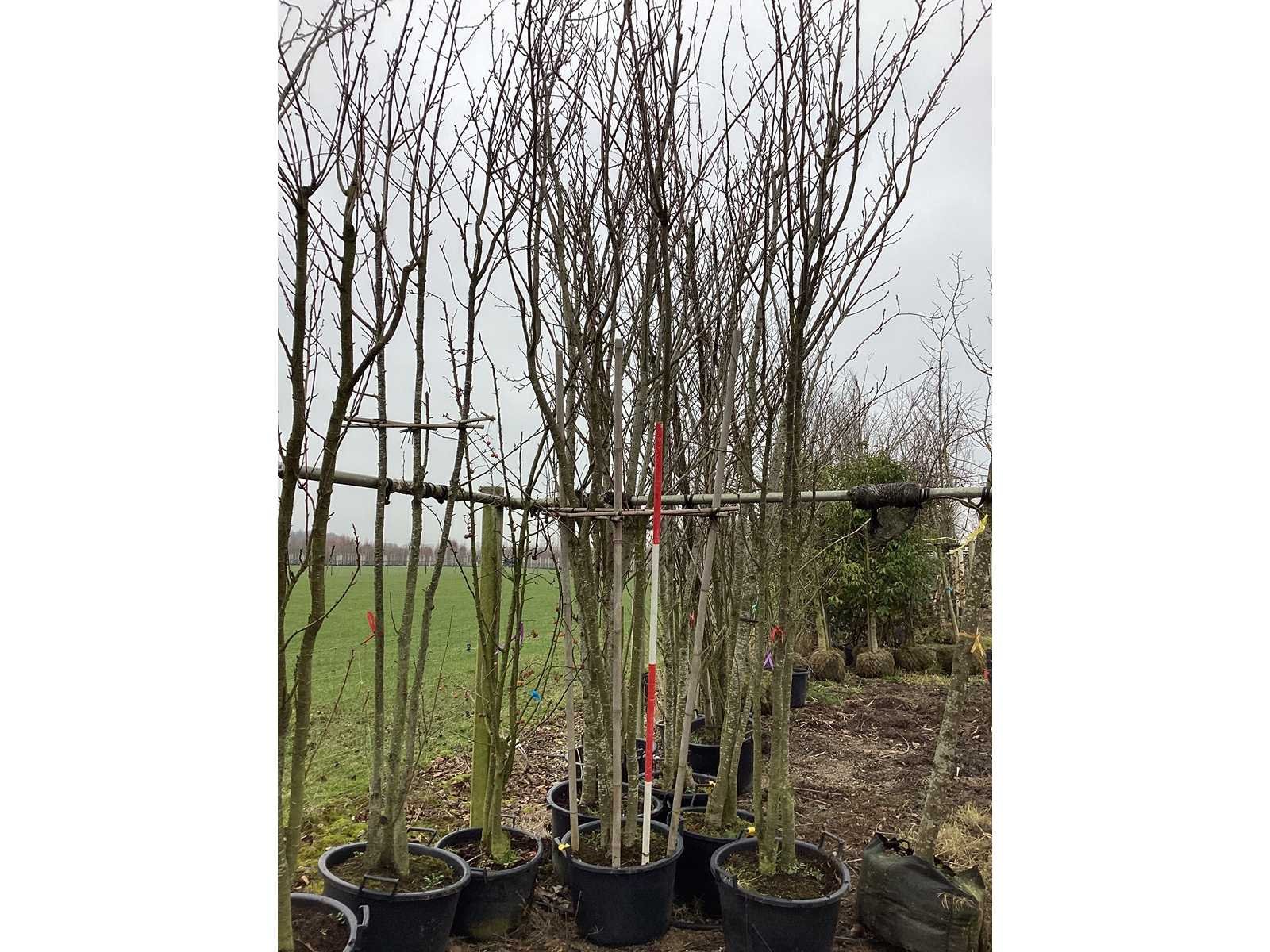 De kavels worden door ons verzameld en klaargelegd voor transport; Wilt u gebruik maken van de bezorgservice neem dan contact op via het emailadres arina@groviatrees.com. Als tip, de bomen zitten nu in de winterrust dus wilt u graag weten wat de zomer- en de herfstkleuren zijn, kijk dan op internet daar staan hele mooie voorbeelden van de bomen. Voor overige vragen bel 0645641495 of 0633049344 Type: Japanse Sierkers Latijnse benaming: Prunus kanzan Hoogte ca.: 450cm In pot: true Stamdikte: 20cm
