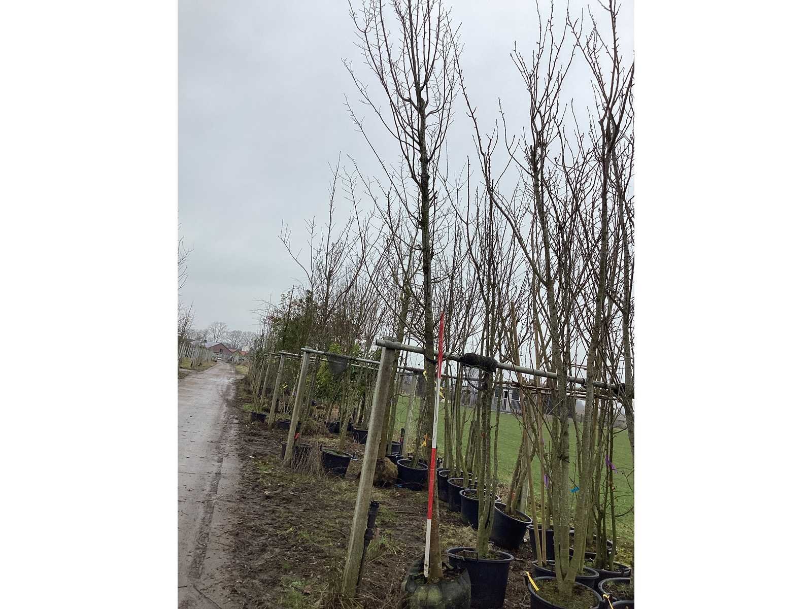 De kavels worden door ons verzameld en klaargelegd voor transport; Wilt u gebruik maken van de bezorgservice neem dan contact op via het emailadres arina@groviatrees.com. Als tip, de bomen zitten nu in de winterrust dus wilt u graag weten wat de zomer- en de herfstkleuren zijn, kijk dan op internet daar staan hele mooie voorbeelden van de bomen. Voor overige vragen bel 0645641495 of 0633049344 Type: Haagbeuk Latijnse benaming: Carpinus betulus Hoogte ca.: 550cm In pot: true Stamdikte: 22cm