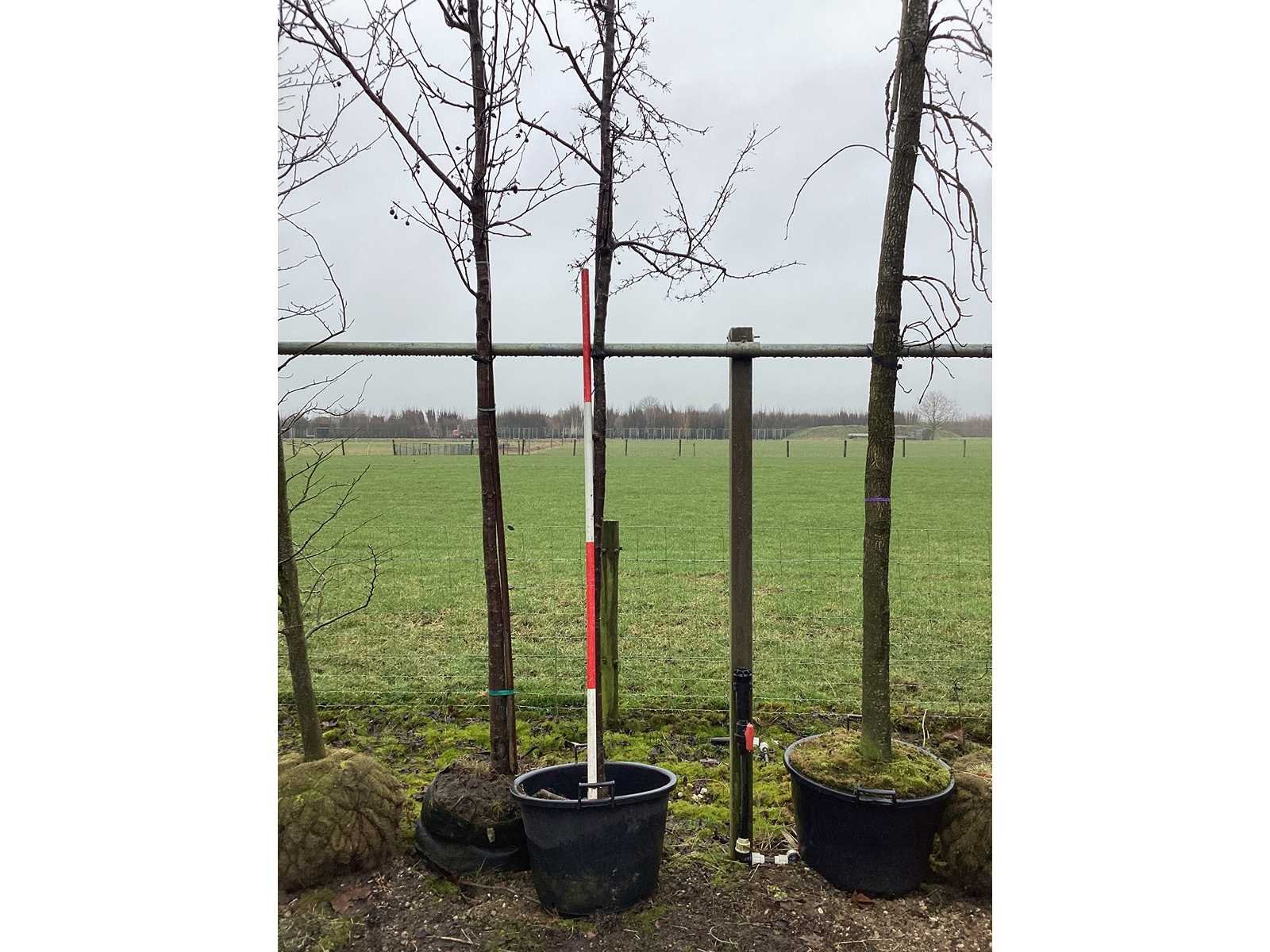 De kavels worden door ons verzameld en klaargelegd voor transport; Wilt u gebruik maken van de bezorgservice neem dan contact op via het emailadres arina@groviatrees.com. Als tip, de bomen zitten nu in de winterrust dus wilt u graag weten wat de zomer- en de herfstkleuren zijn, kijk dan op internet daar staan hele mooie voorbeelden van de bomen. Voor overige vragen bel 0645641495 of 0633049344 Type: Sierappel Latijnse benaming: Malus veitch scarlet Hoogte ca.: 450cm In pot: true Stamdikte: 14cm