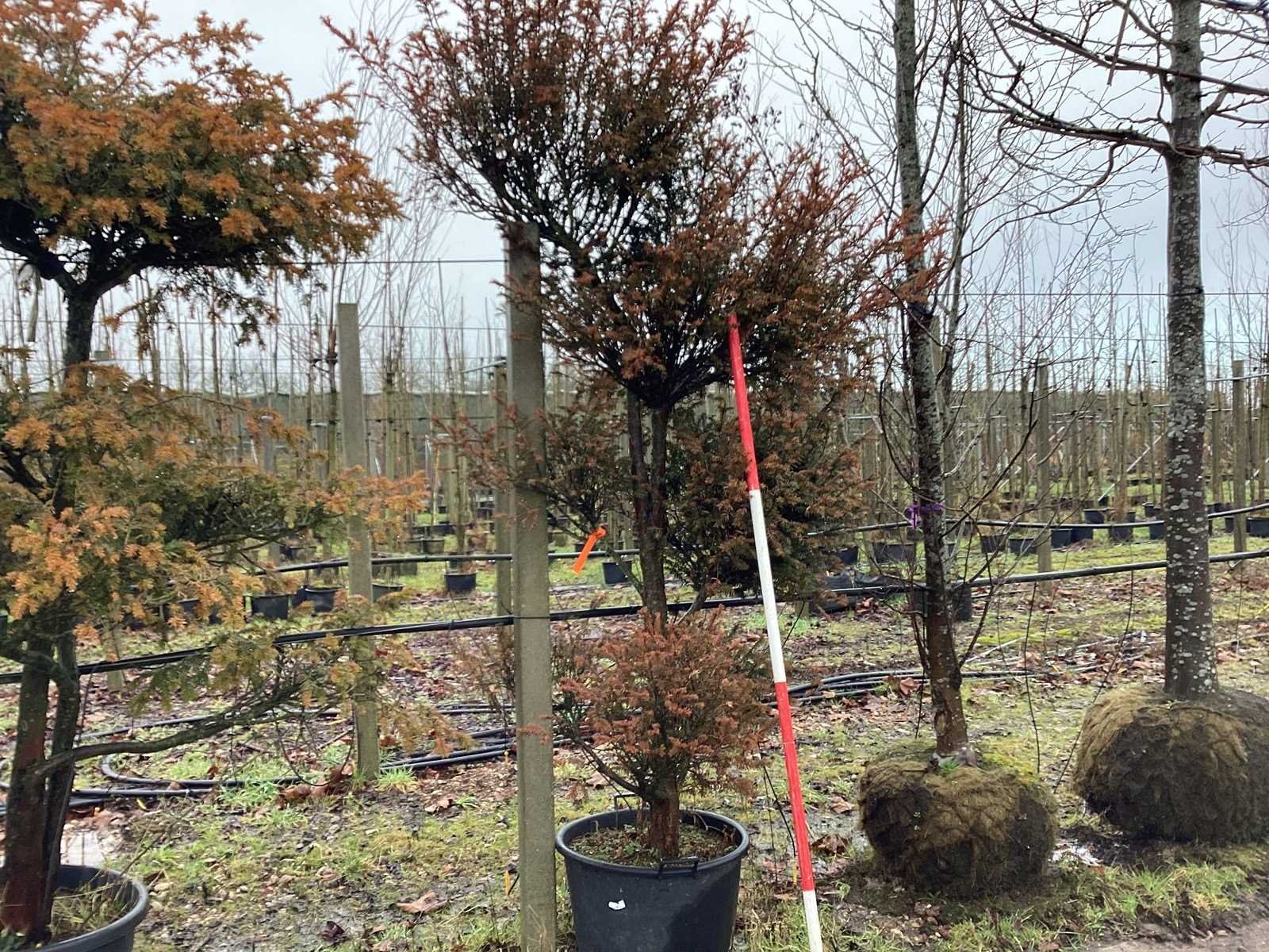 De kavels worden door ons verzameld en klaargelegd voor transport; Wilt u gebruik maken van de bezorgservice neem dan contact op via het emailadres arina@groviatrees.com. Als tip, de bomen zitten nu in de winterrust dus wilt u graag weten wat de zomer- en de herfstkleuren zijn, kijk dan op internet daar staan hele mooie voorbeelden van de bomen. Voor overige vragen bel 0645641495 of 0633049344 Type: Venijnboom Latijnse benaming: Taxus Baccata Hoogte ca.: 250cm In pot: true Stamdikte: 23cm