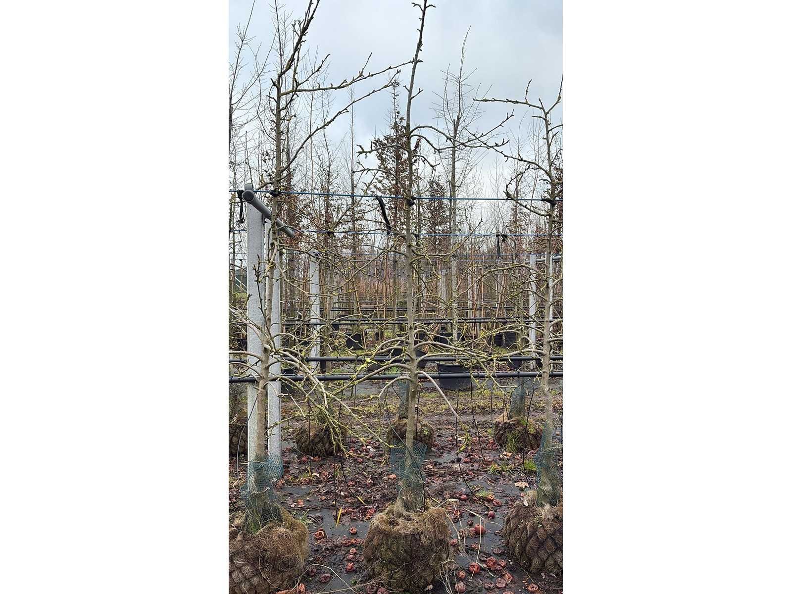 De kavels worden door ons verzameld en klaargelegd voor transport; Wilt u gebruik maken van de bezorgservice neem dan contact op via het emailadres arina@groviatrees.com. Als tip, de bomen zitten nu in de winterrust dus wilt u graag weten wat de zomer- en de herfstkleuren zijn, kijk dan op internet daar staan hele mooie voorbeelden van de bomen. Voor overige vragen bel 0645641495 of 0633049344 Type: Elstar Appel Latijnse benaming: Malus d Elstar Hoogte ca.: 300cm Met kluit: true Stamdikte: 15cm