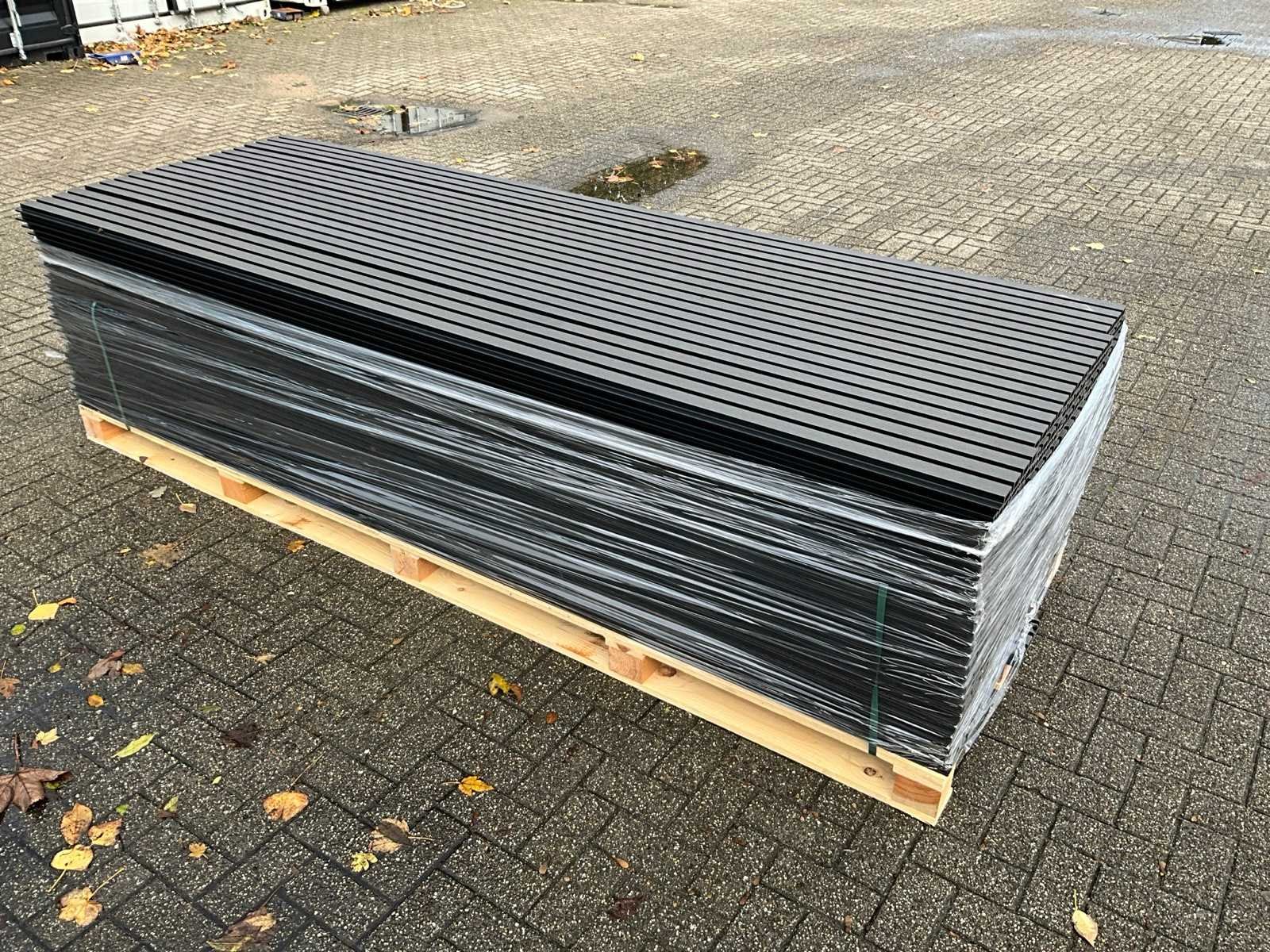 50 panelen van 290 x 21,9 cm, werkende breedte; 20cm, kleur; zwart mat, lange levensduur, 50 panelen is circa een werkende 29 m2 oppervlakte. Product type: composiet Lengte: 290cm Breedte: 21.9cm