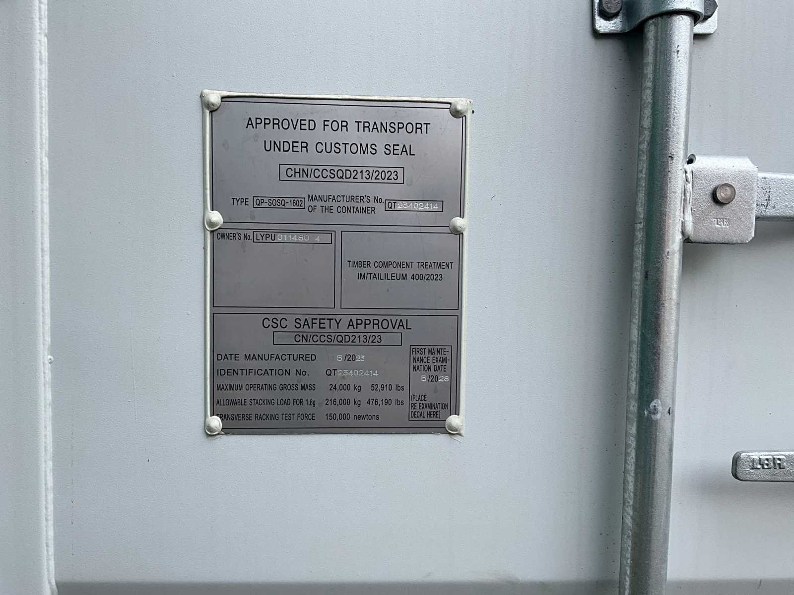 V.v. 1 einddeur en 4 zijdeuren, slotkasten, beluchtingkanalen, geschikt voor zee transport (export), max laadvermogen 24 ton, afhalen op afspraak, Merk: LYPU Type: 40ft HQ met sidedoors Bouwjaar: 2025 Lengte (ft): 40 High cube: true Eigen gewicht: 4260kg Totale afmeting L: 12192mm Totale afmeting Breedte: 2438mm Totale afmeting Hoogte: 2896mm