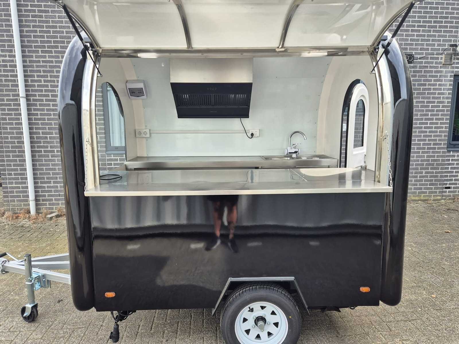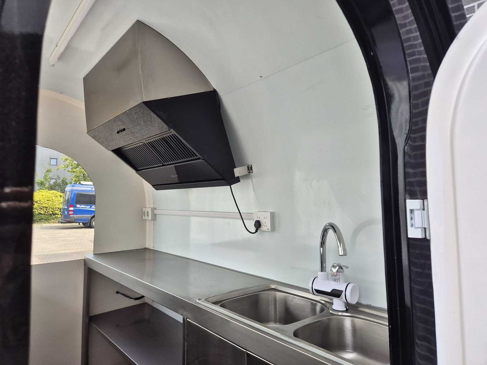 Foodtruck zwart met koelwerkbank en afzuigkap - 2025
