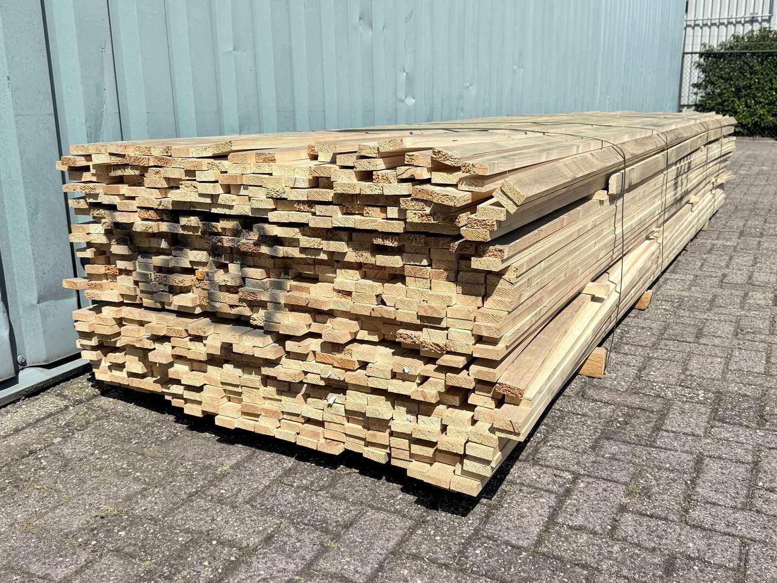 Vol pakket van ± 545 Vuren latten 4500x48x18mm. Ongebruikt! Lengte: 450cm Breedte: 4,8cm Hoogte: 1,8cm Materiaal: Vurenhout