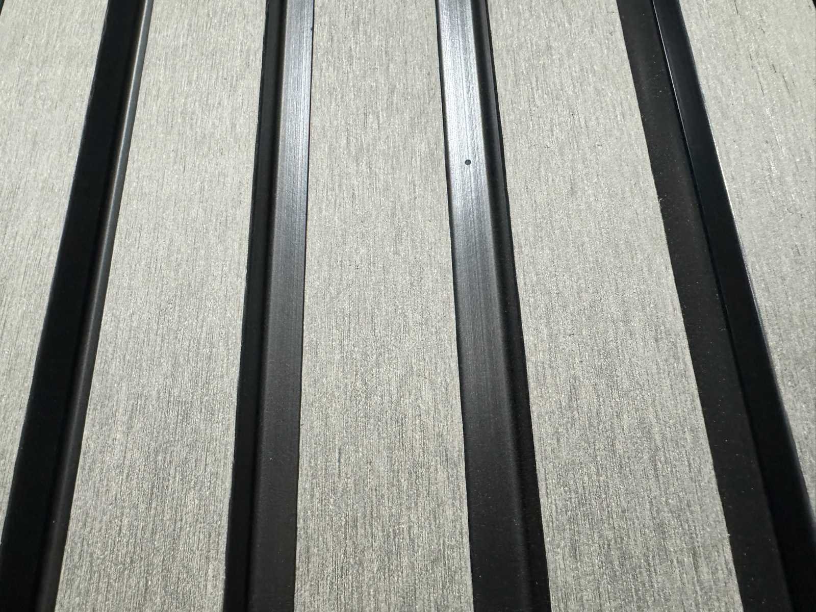 Lengte 2900 mm; breedte 219 mm; werkende breedte 200 mm; plank dikte 26 mm; kleur voorzijde geborsteld grijs; kleur tussen de voorzijdes is zwart; ongebruikte planken; gestapeld op 1 pallet; Materiaal: Composiet