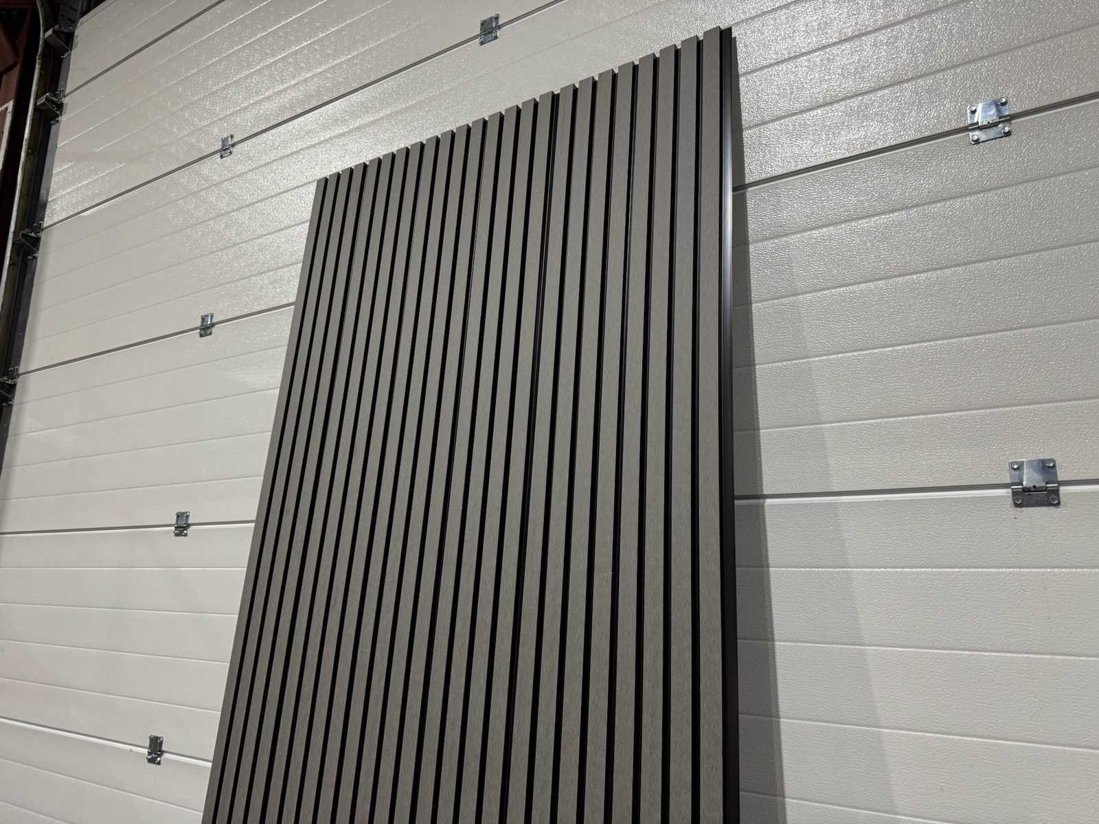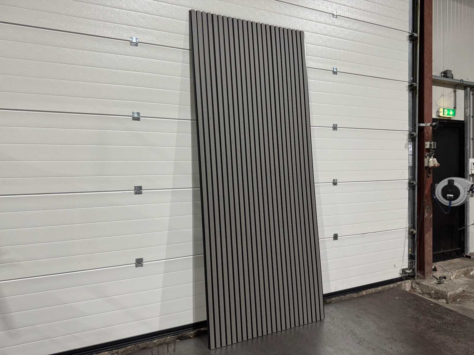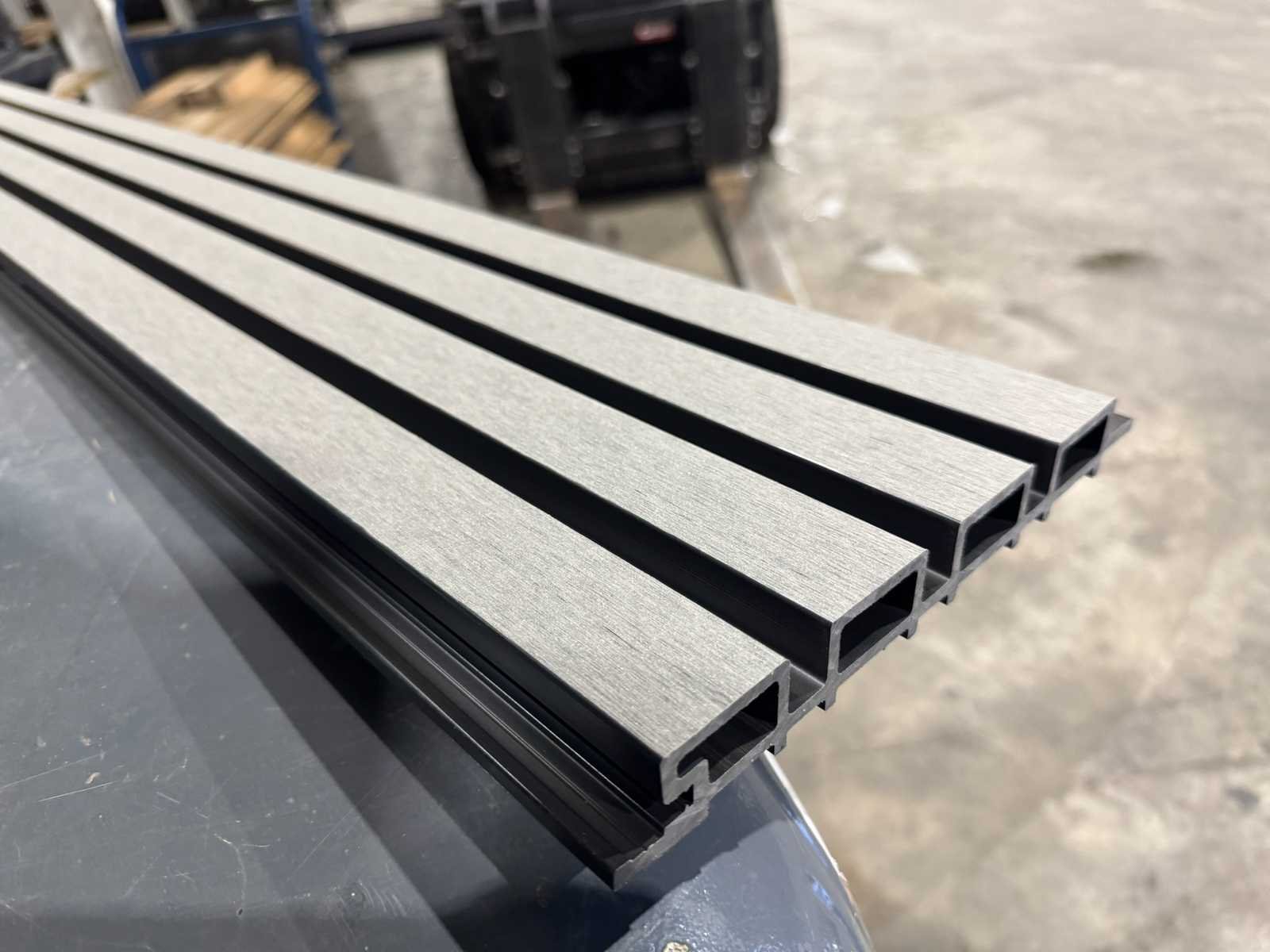Lengte 2900 mm; breedte 219 mm; werkende breedte 200 mm; plank dikte 26 mm; kleur voorzijde geborsteld grijs; kleur tussen de voorzijdes is zwart; ongebruikte planken; gestapeld op 1 pallet; Materiaal: Composiet