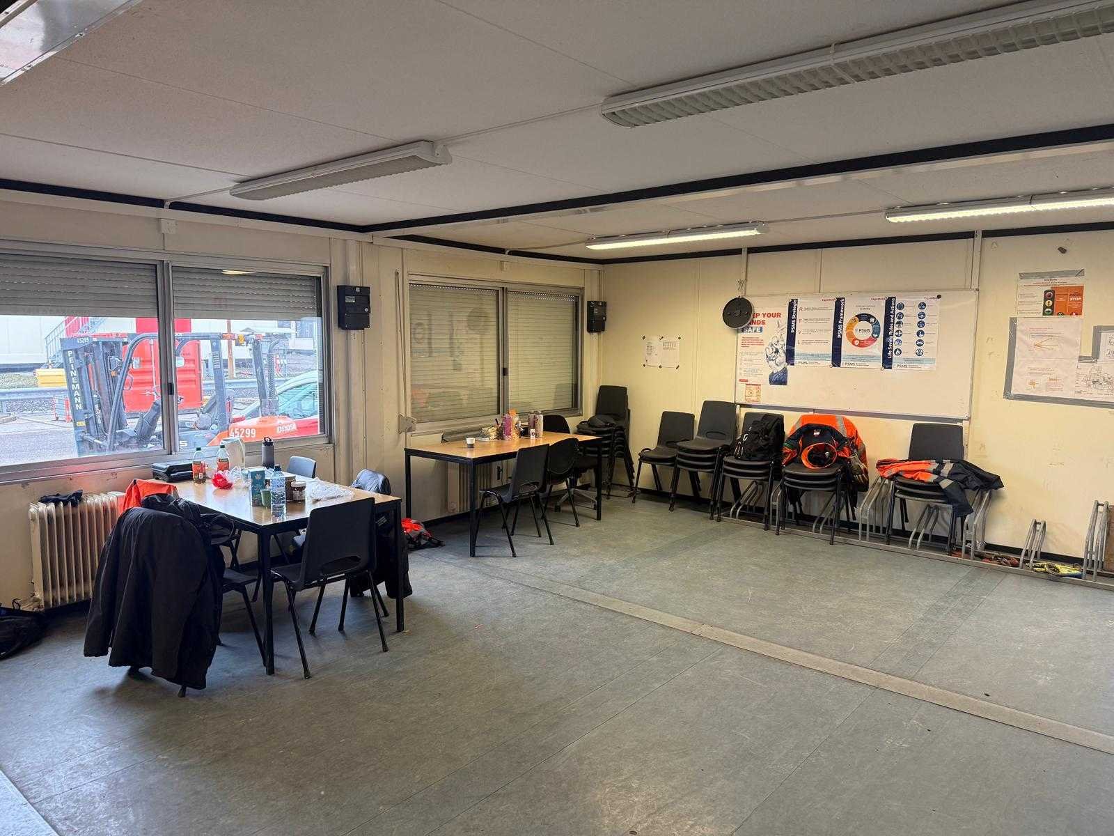 Kantoorunit bestaande uit 10 geschakelde units (bouwketen) met een totale afmeting van circa 15x6x6 meter (L x B x H); lineaire afmetingen/vloer oppervlakte ca. 180m2; onder verdieping ingedeeld met een centrale gang; Eén unit is voorzien van keuken en sanitaire ruimte met 2 urinoirs, 2 toiletten en wastafels; Twee units momenteel ingericht als kantine; Eén unit is voorzien van een keukenblok; let op; tijdens de ophaaldag worden de units kosteloos per kraan op transport koper geplaatst; koper dient voor adequaat transport (trailers) te zorgen Aantal ramen: 9 Keukenblok: true Toilet: true