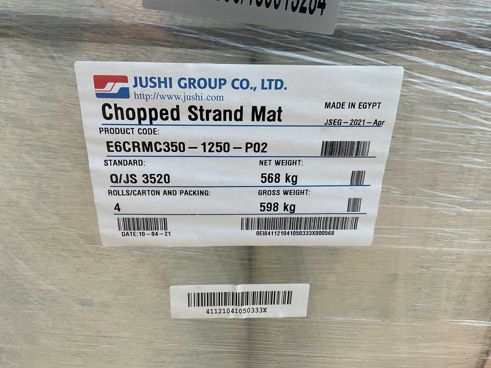 Polyester; 350 gr/m2; 3 pallets; 12 rollen; 2 pallets breedte van 1250; 1 pallet breedte van 1050 Merk: Jushi group Gewicht: 1700kg Type: E6CRMC350