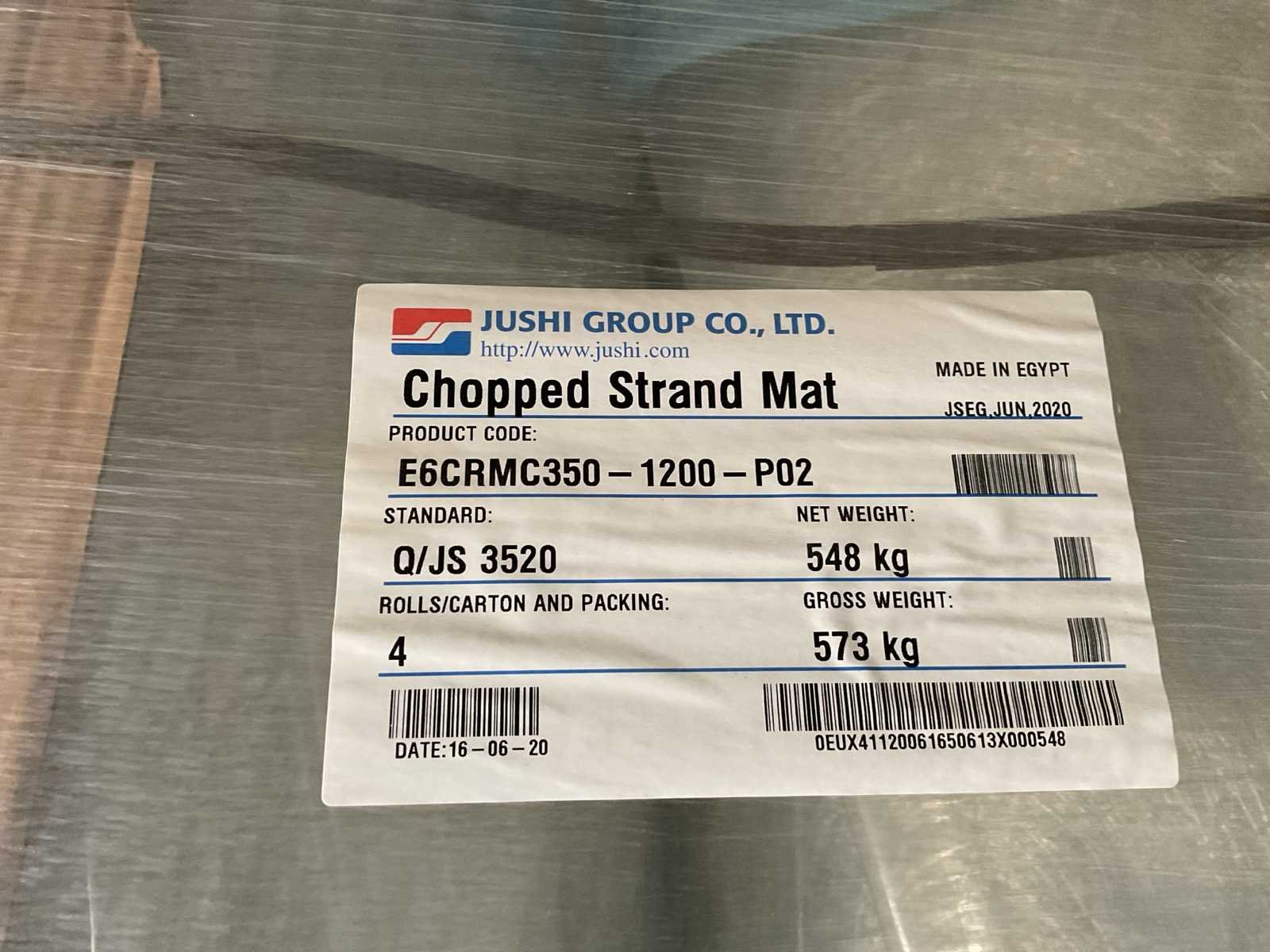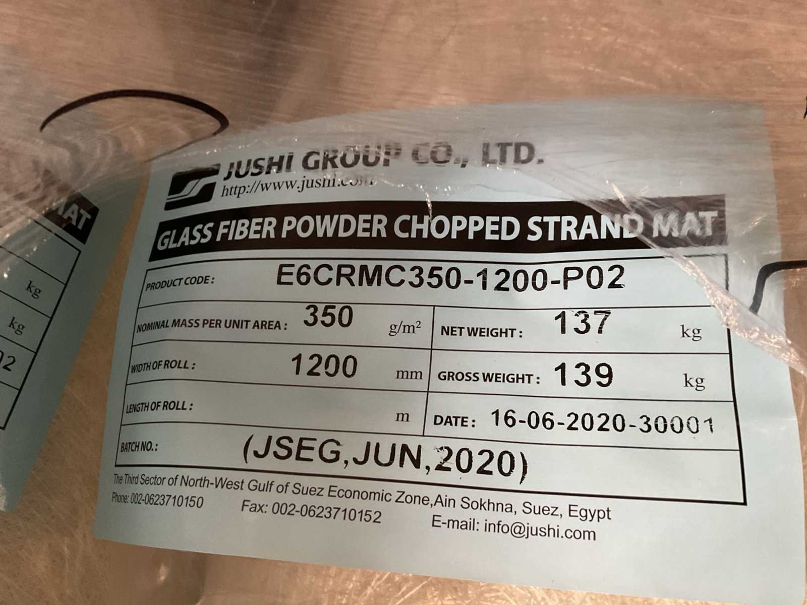 Polyester; 350 gr/m2; 2 pallets; 8 rollen Merk: Jushi group Gewicht: 1096kg Type: E6CRMC350 Afmeting b: 1200mm