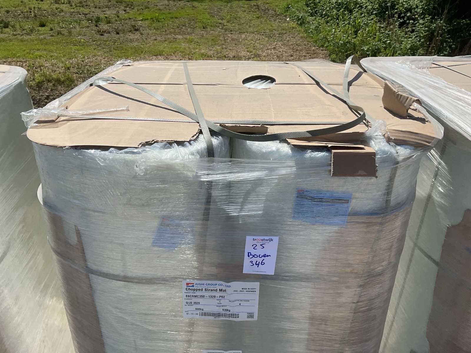 Polyester; 350 gr/m2; 5 pallets; 20 rollen Merk: Jushi group Gewicht: 3000kg Type: E6CRMC350 Afmeting b: 1320mm