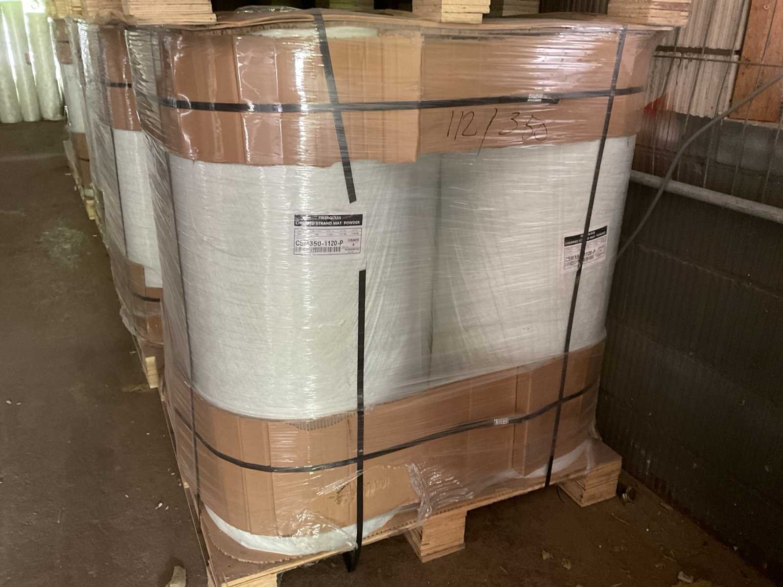 Polyester poedergebonden; 350 gr/m2; 4 pallets; 16 rollen Merk: Jushi group Gewicht: 1881kg Type: CSM350 Afmeting b: 1120mm