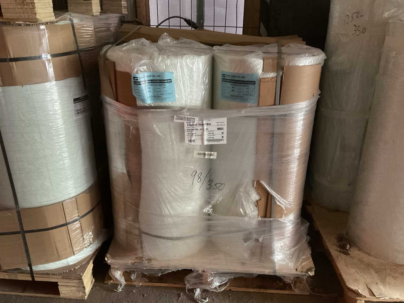Polyester Poedergebonden; 350 gr/m2; 1 pallet; 4 rollen Merk: Jushi group Gewicht: 444kg Type: E6CRMC450 Afmeting b: 980mm