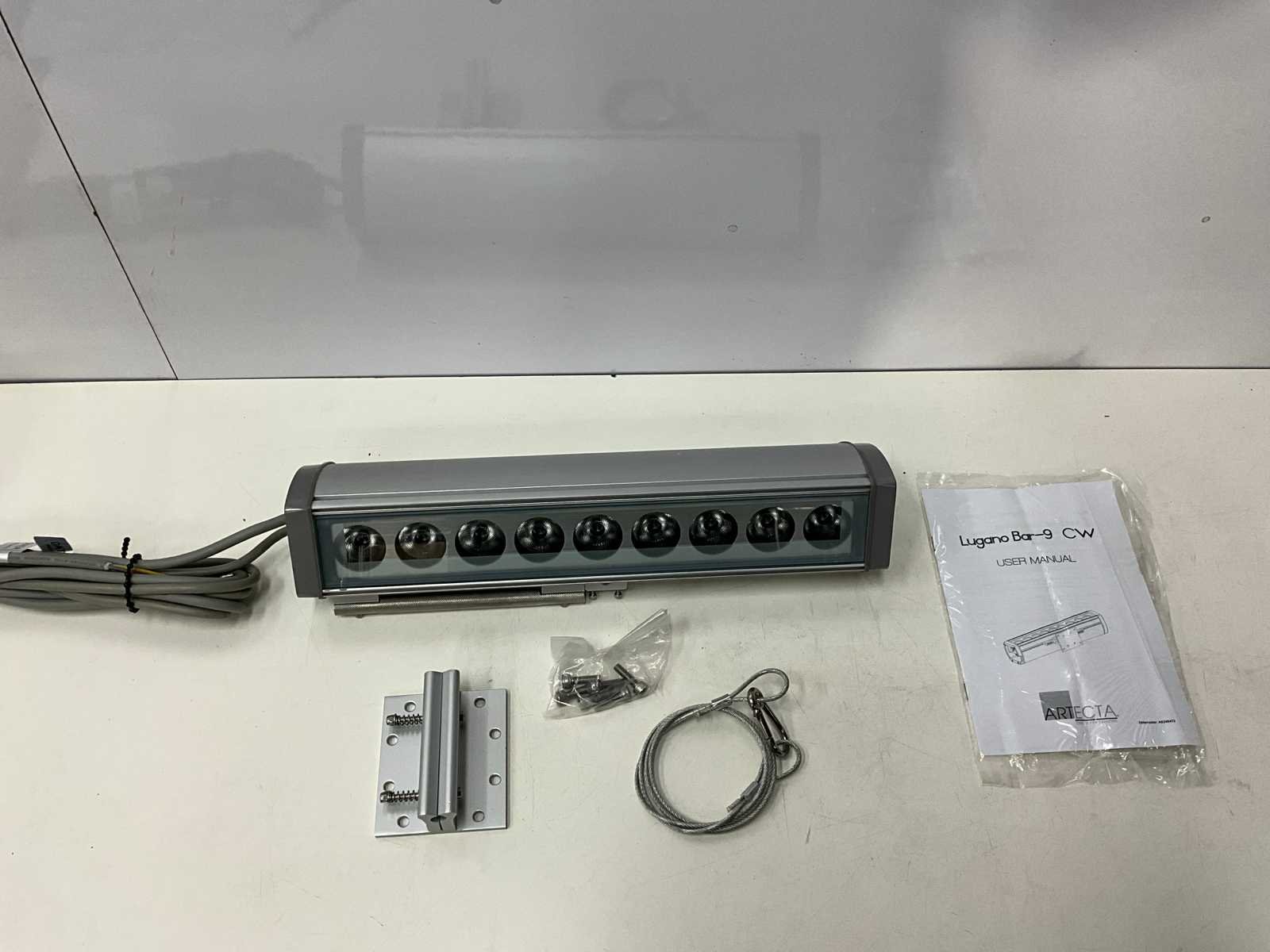 Merk: Artecta Model: Lugano Bar-9 CW Product type: Buiten lamp wand Met lichtbron: true Fitting: Led Cool White Wattage: 35W Lichtbron: Led Kleur: Aluminium Lengte: 40cm Materiaal: Aluminium