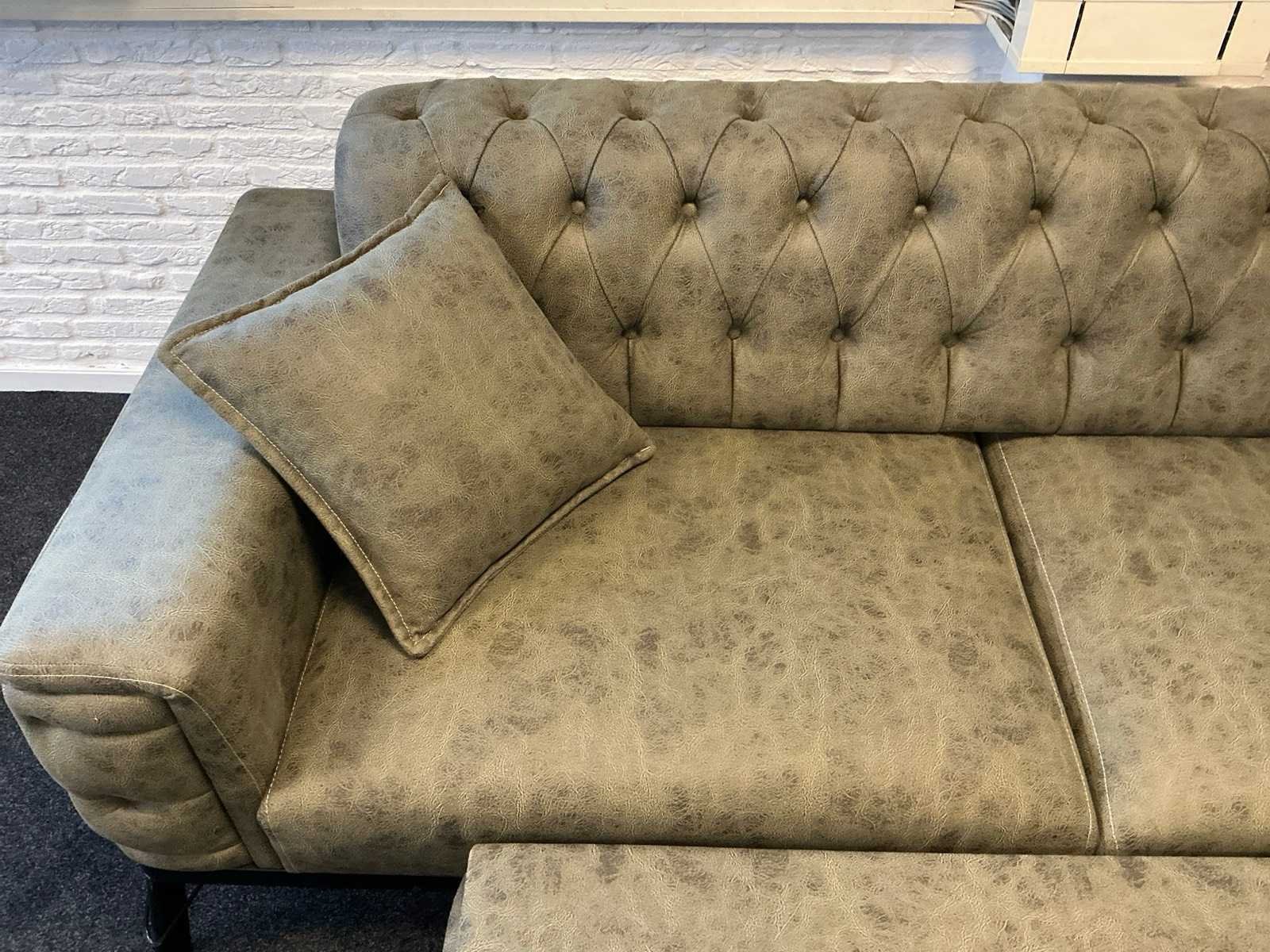 Merk: Chesterfield Kleur: Groen Lengte: 90cm Breedte: 220cm Hoogte: 80cm Zithoogte: 43cm