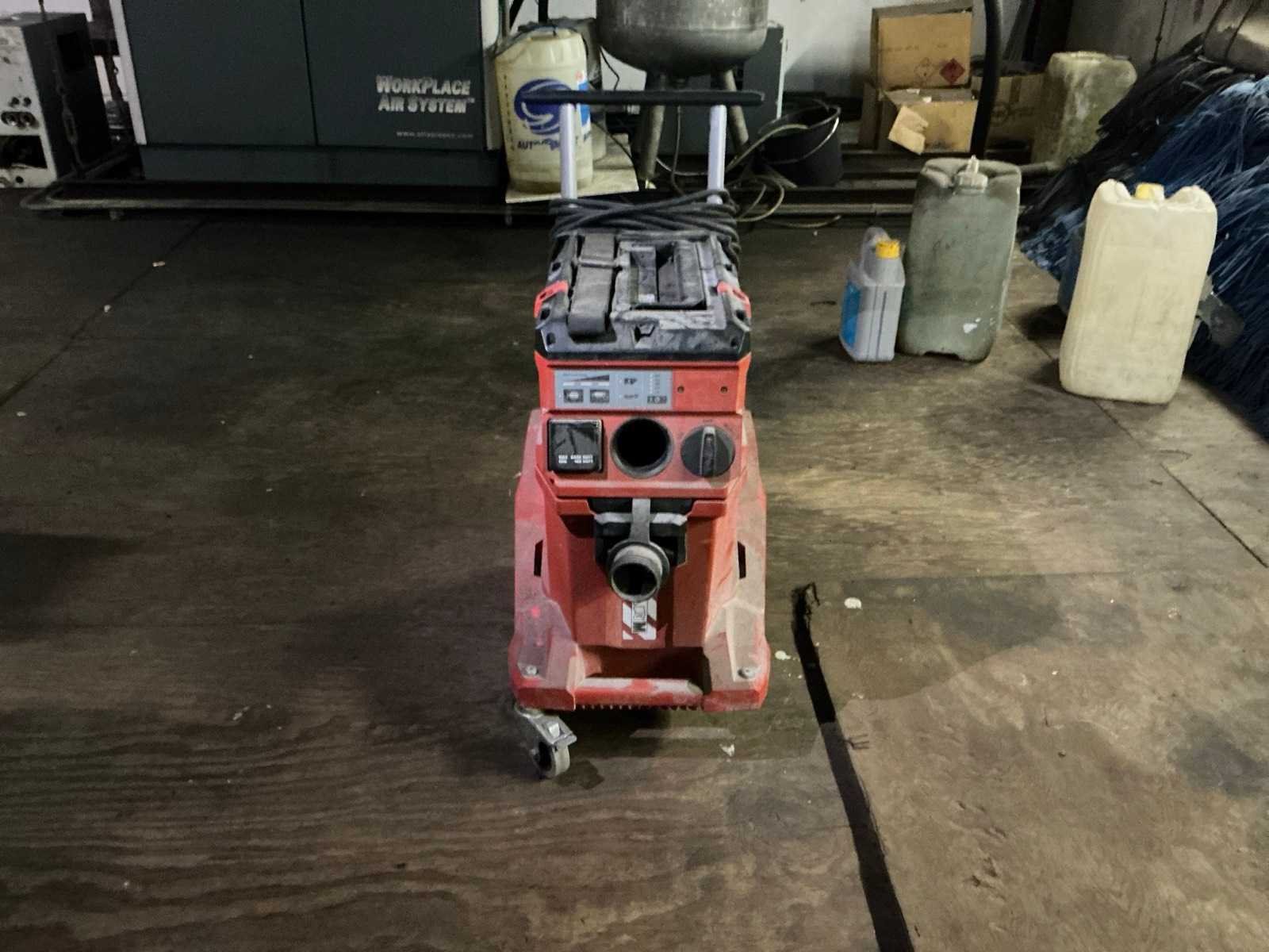 Zonder zuigslang,mist 1 wiel Merk: Hilti Type: VC 40M-X Bouwjaar: 2025 Serienummer: 201011091 Vermogen: 2400W Nat/droog zuiger: true Stopcontact: true