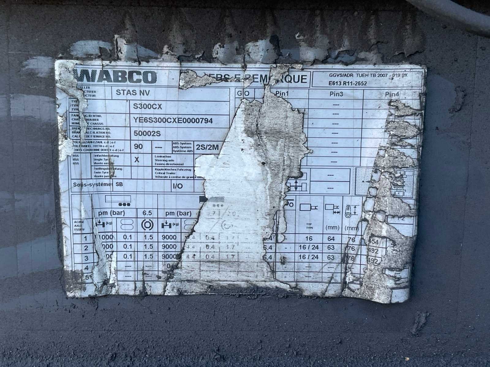 Kipper; 55 m3 Merk: Stas Type: S300CX Bouwjaar: 2014 Chassisnummer VIN: YE6S300CXE0000794 Kenteken: ON-56-JJ Datum eerste toelating (NL): 2014-09-01 Datum eerste toelating: 2014-09-01 APK vervaldatum: 2026-02-05 Laadvermogen: 30610kg