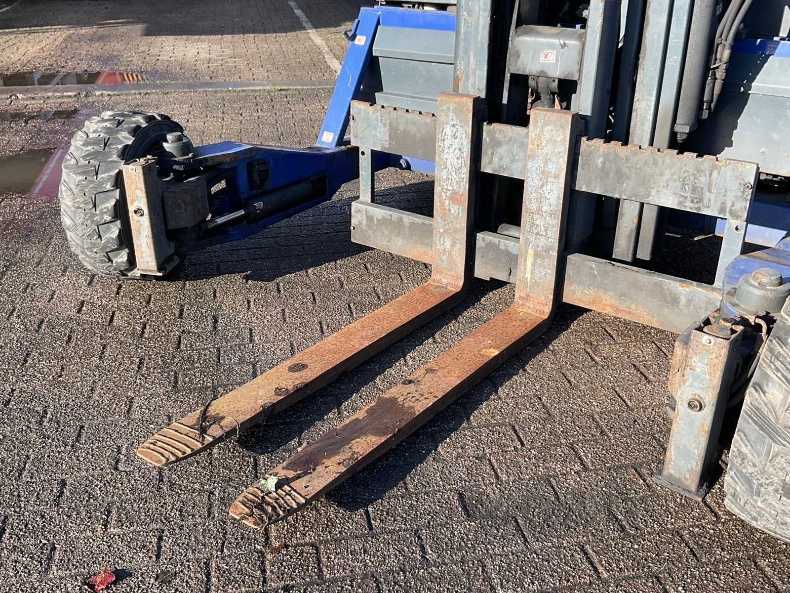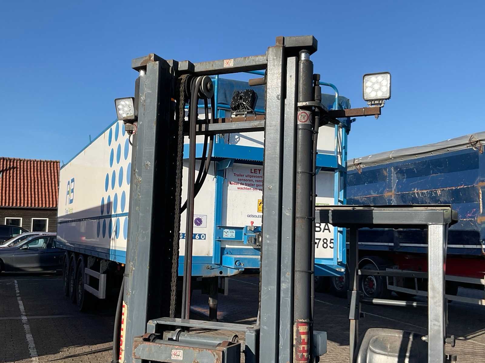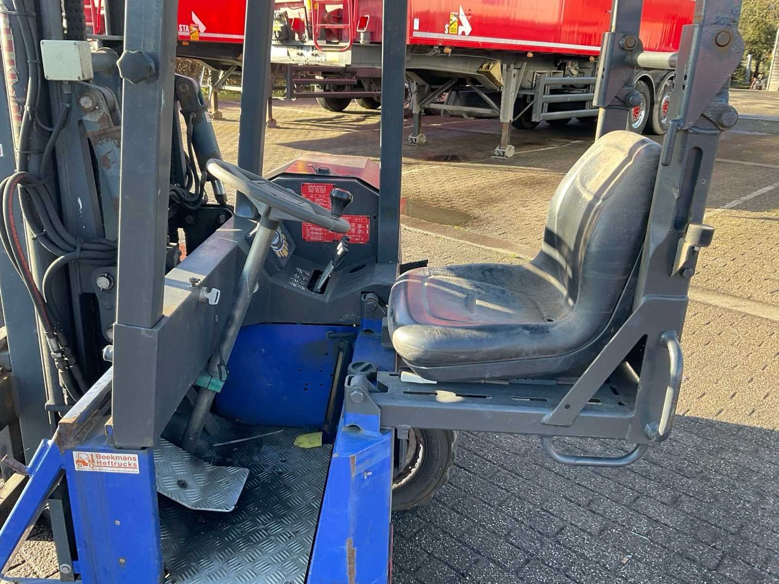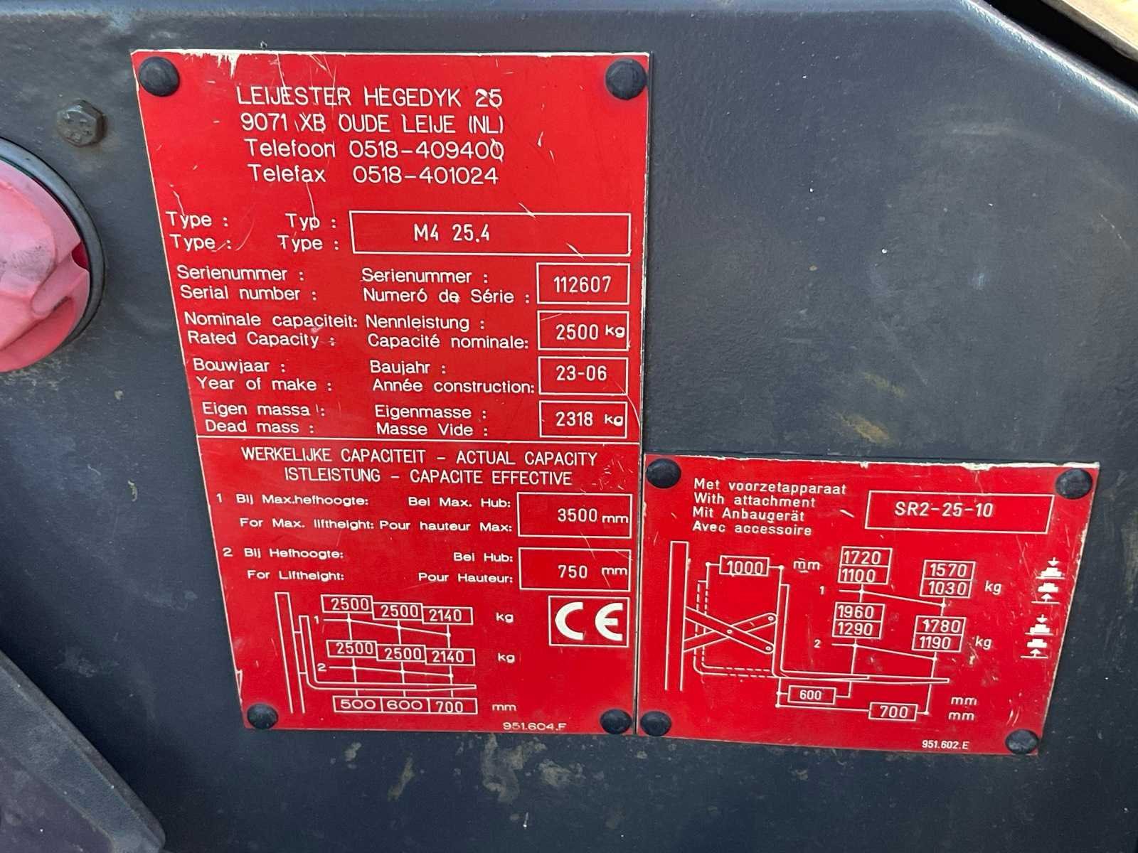 Afgelezen urenstand onbekend Merk: Leijester / Moffett Type: M4 25.4 Bouwjaar: 2006 Brandstof: Diesel Mast: Duplex Soort band: Luchtbanden Aantal wielen: 3 Duplex mast: true Eigen gewicht: 2318kg Hefvermogen: 2500kg Lepellengte: 1200mm Max. hefhoogte: 3500mm Minimale doorrijhoogte: 2600mm Diesel: true