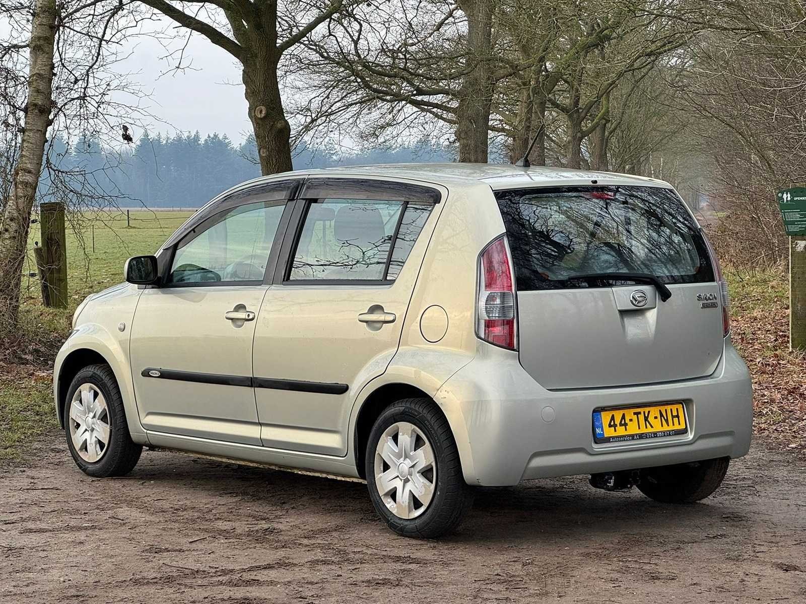 Kenteken: 44-TK-NH Merk: Daihatsu Model: Sirion 2 Type: 1.0-12V Trend Bouwjaar: 2006 Afgelezen kilometerstand: 132850km Cilinderinhoud: 998cc Vermogen (kW): 51kW Brandstof: Benzine NAP status: Logisch Datum eerste toelating: 2006-10-19 Datum eerste toelating (NL): 2006-10-19 APK vervaldatum: 2026-12-19 Vermogen (pk): 68hp Aantal zitplaatsen: 5 Maximaal trekgewicht ongeremd: 750kg Maximaal trekgewicht geremd: 350kg Kleur: beige Transmissie: H5 Emissieklasse: 4 Aantal deuren: 4 Ledig gewicht: 865kg Bruto BPM (NL): 1255€ Aantal cilinders: 3 Carrosserie: Hatchback Nationaliteit documenten: NL Carfax Link: https://was.carfax.eu/v0/api/ccdid/5100016408/svc/201/vinreg/44TKNH/checksum/eyJhbGciOiJIUzI1NiIsInR5cCI6IkpXVCJ9.eyJleHAiOjE3NzU5ODk3NDZ9.hbCnaBGxqucUeyOQdodQbU4QU_deyt8I-OHIID6m8Ns