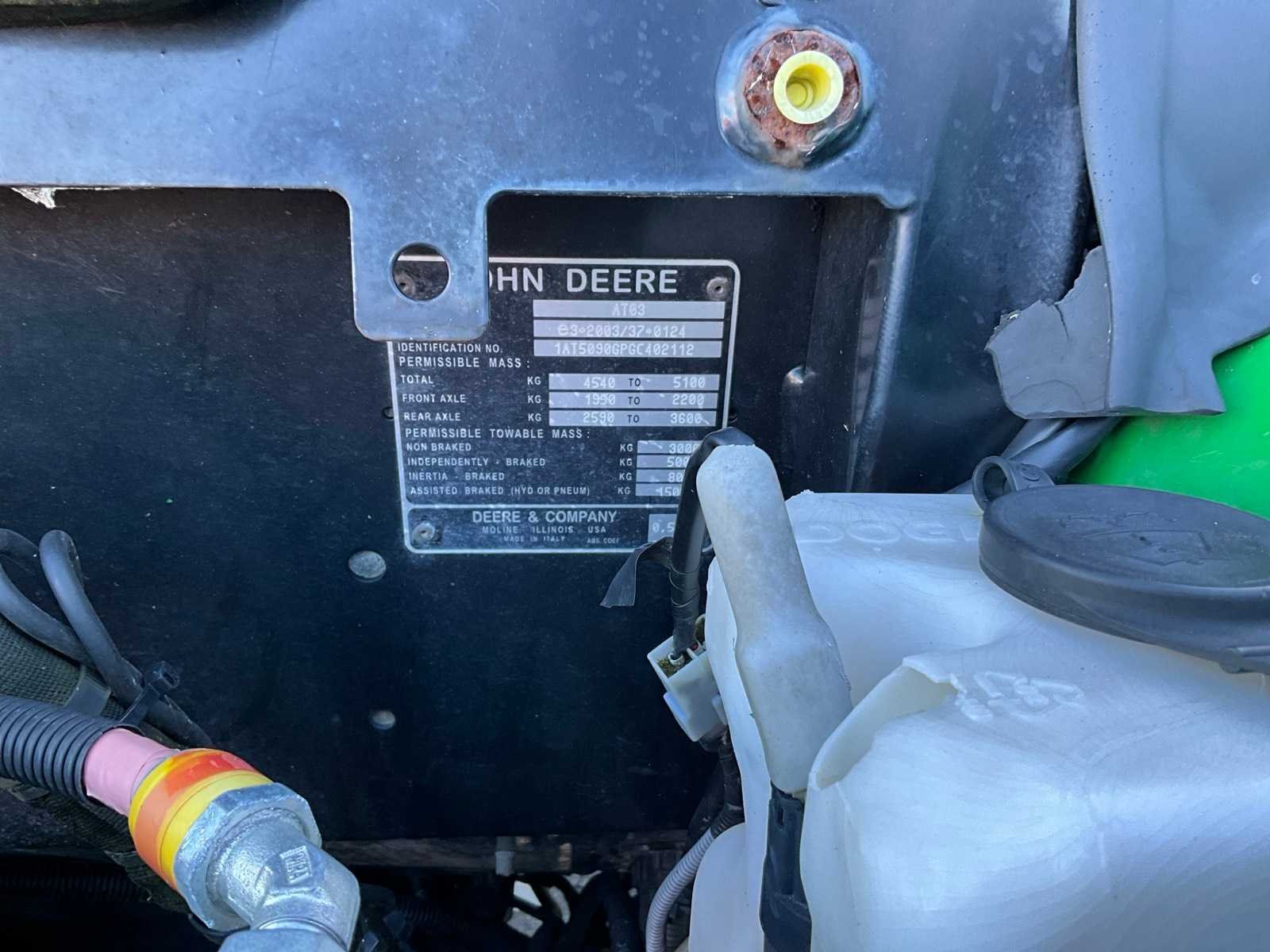 Motor geeft soms beperkt vermogen, Fronthef, hydraulisch remventiel, luchtremsysteem opgebouwd, 40 km uitvoering, handgeschakeld met kruipversnelling, PTO 540-1000RPM, spatbord bediening, verstelbare trekhaak Merk: John Deere Type: 5090G Bouwjaar: 2016 Serienummer: 1AT5090GPGC402112 Kenteken: TNX-80-G Afgelezen urenstand: 2488 Versnellingsbaktype: Handgeschakeld Aantal hydraulische ventielen achter: 2 Bandenmaat voor: 440/65R20 Bandenmaat achter: 540/65R30 Fronthefinrichting: true Cabine: true Luchtgeveerde stoel: true Datum eerste toelating: 2016-06-30 Nationaliteit documenten: Nederland