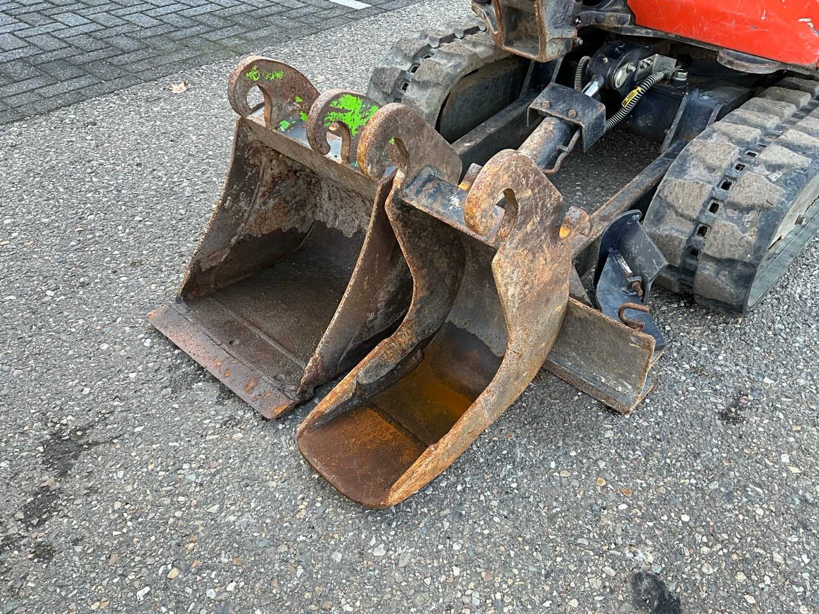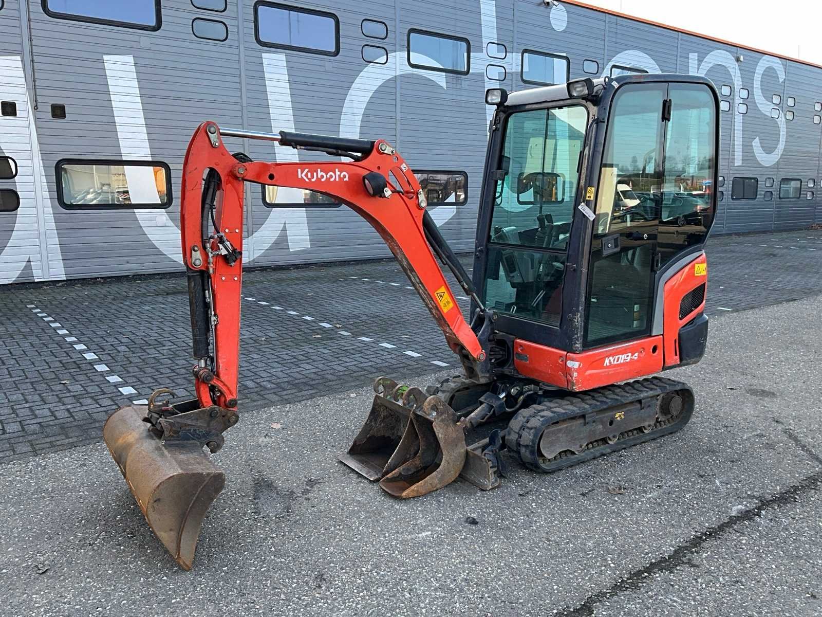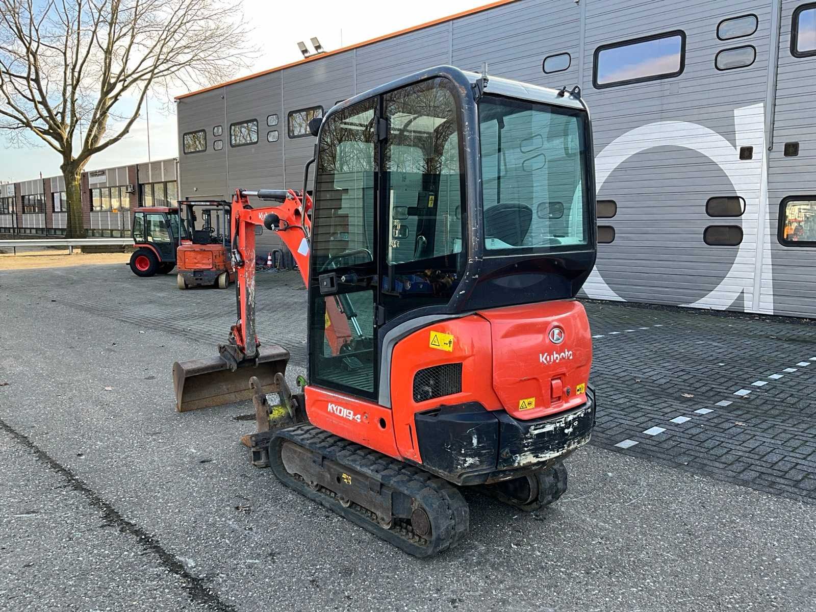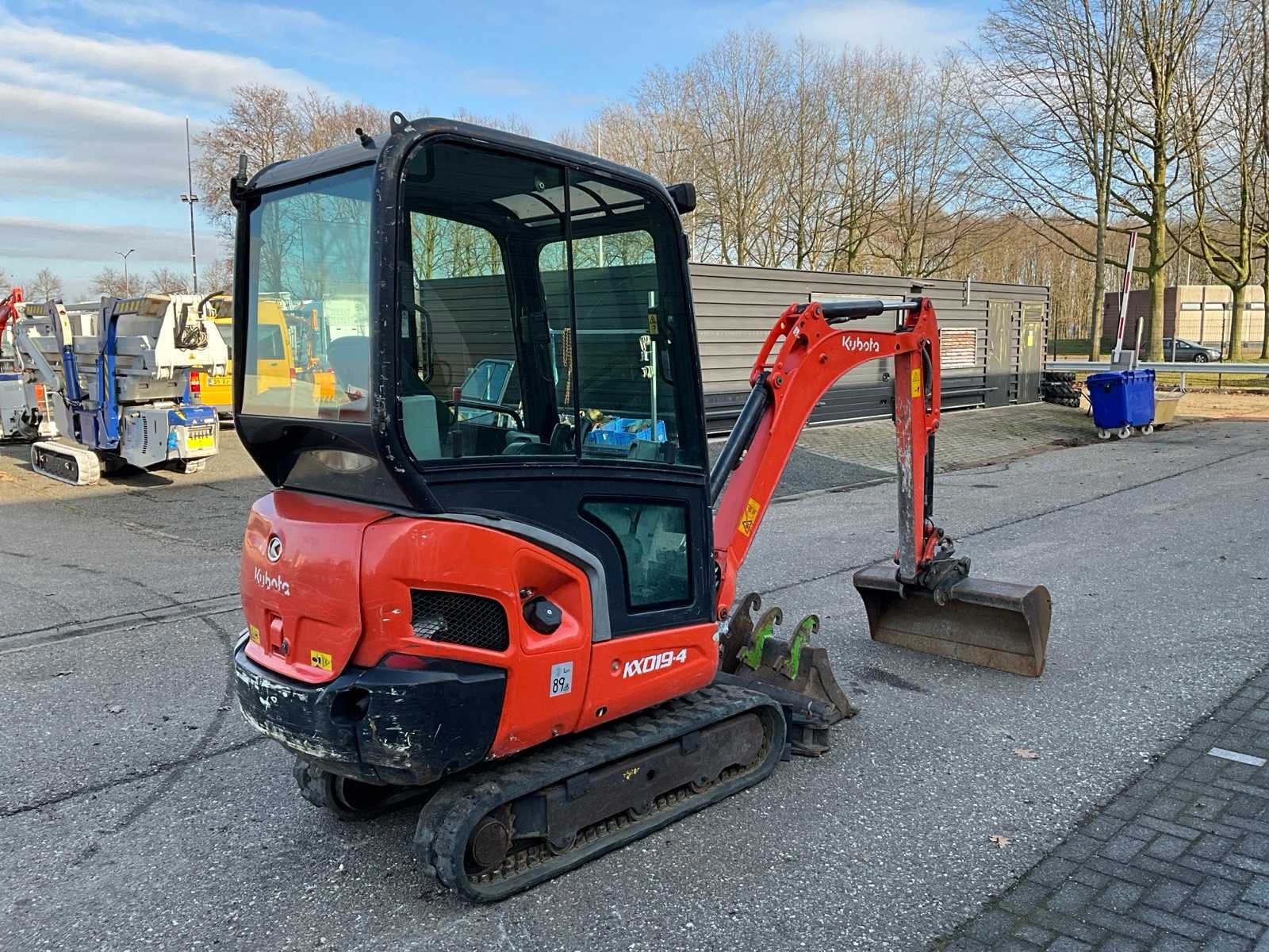 CW05 hydraulische snelwissel, CW05 slotenbak 1000mm, CW05 dieplepel 400mm, CW05 banaanbak 220mm, schuifblad met verbreders, zwenkgiek, extra hydraulische functie voorbereid, verstelbaar rijwerk, 2e rijsnelheid Merk: Kubota Type: KX019-4 Bouwjaar: 2016 Serienummer: 61450 Merk motor: Kubota D902 Motorvermogen (kW): 12kW Aantal cilinders: 3 Brandstof: Diesel Inclusief graafbak: Yes Rups breedte: 230mm Afgelezen urenstand: 4439 Totale afmeting L: 3700mm Totale afmeting Breedte: 1000mm Totale afmeting Hoogte: 2300mm