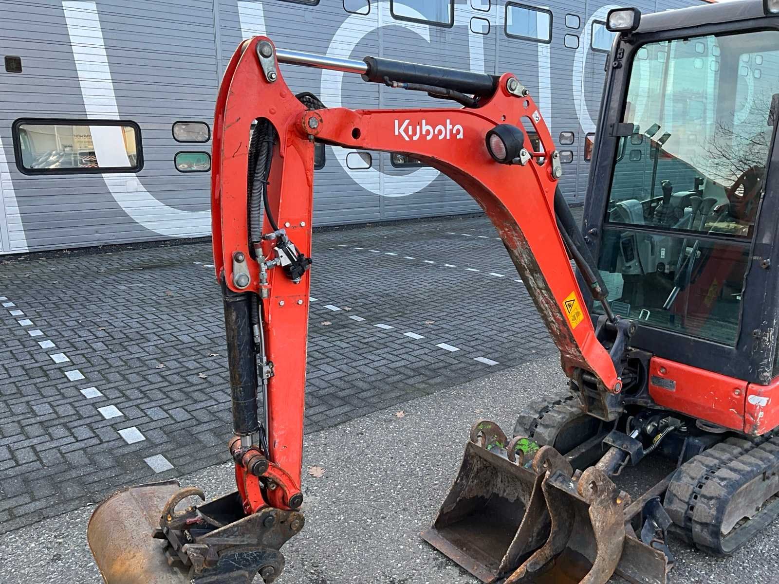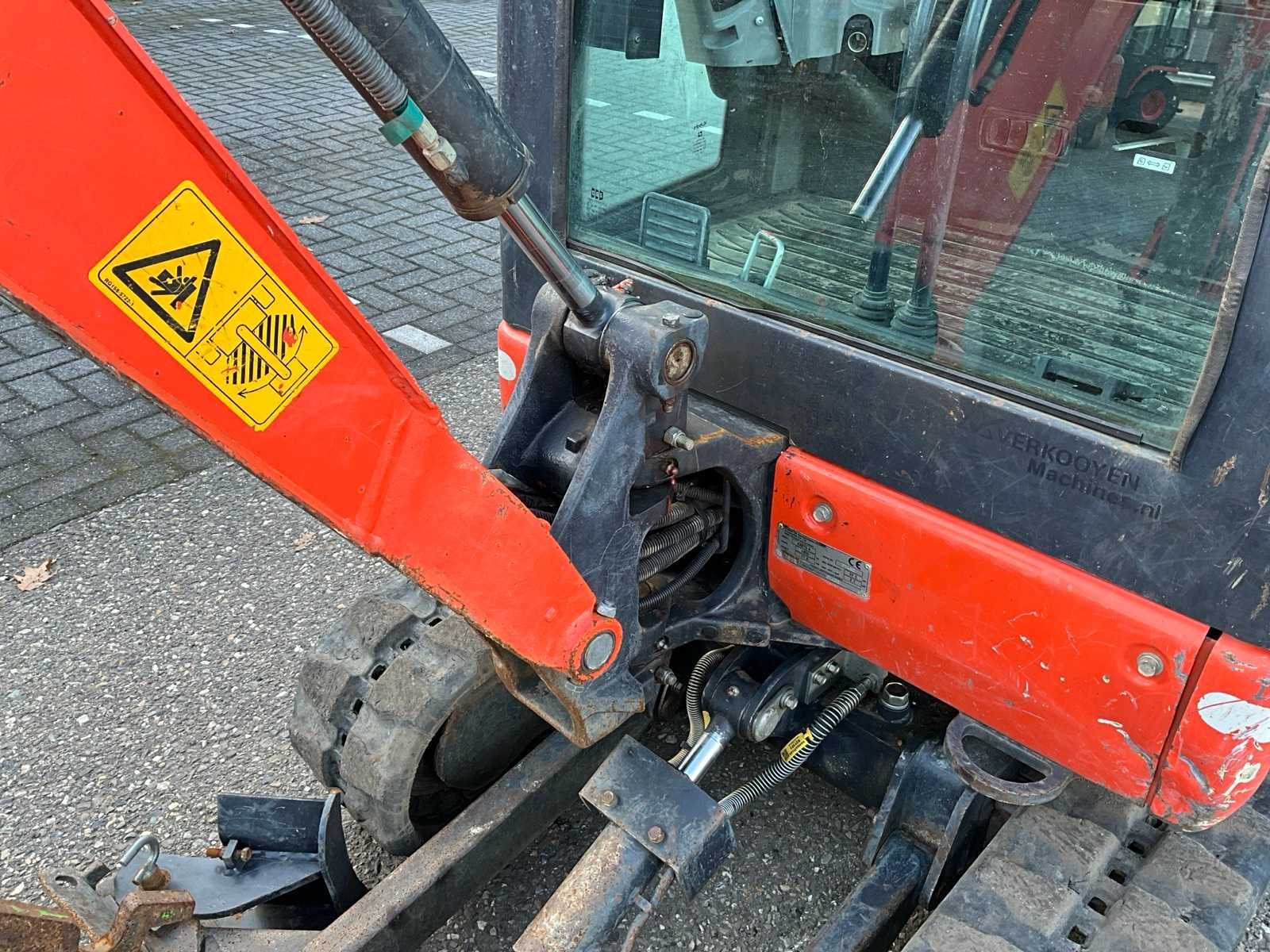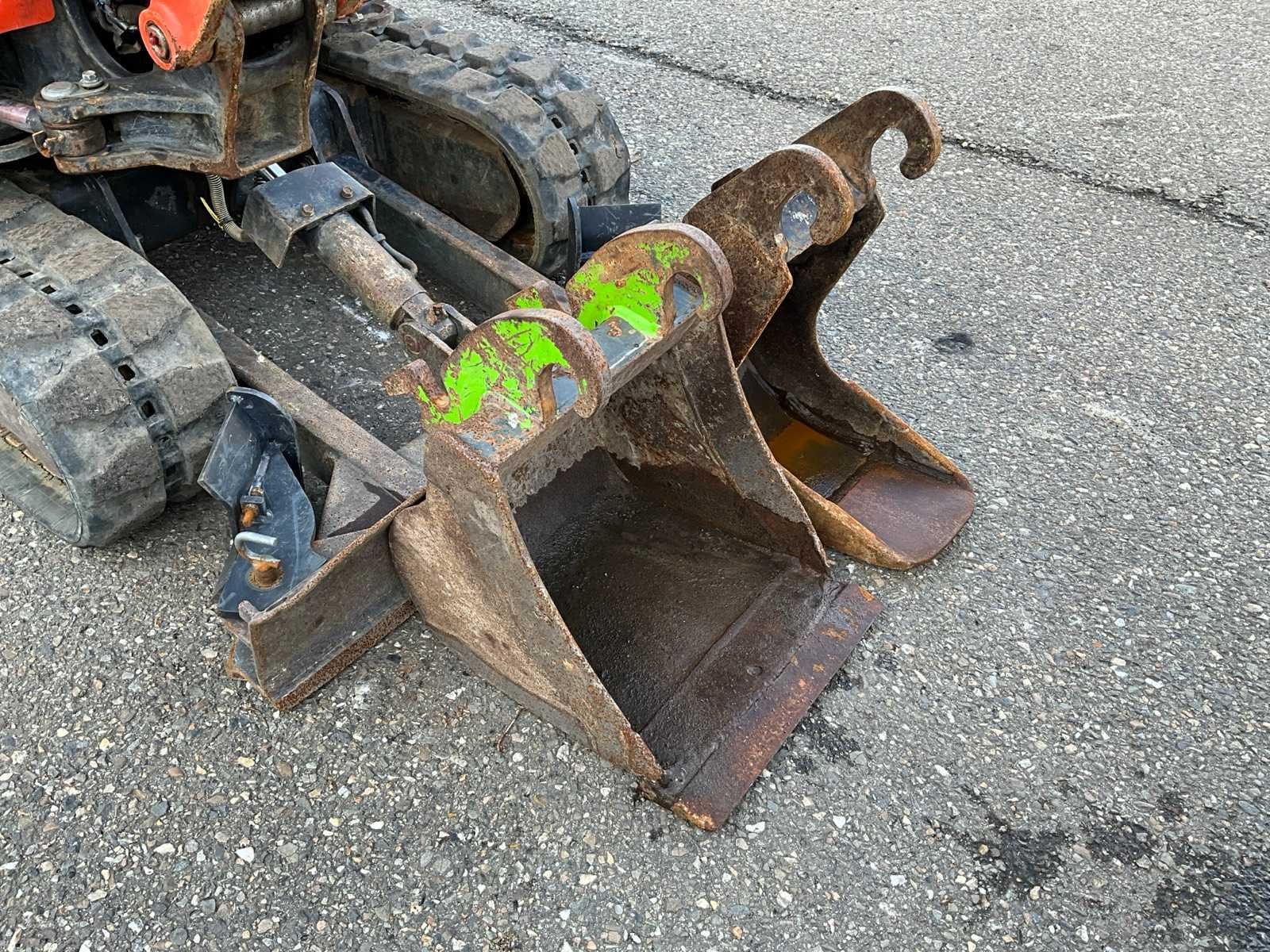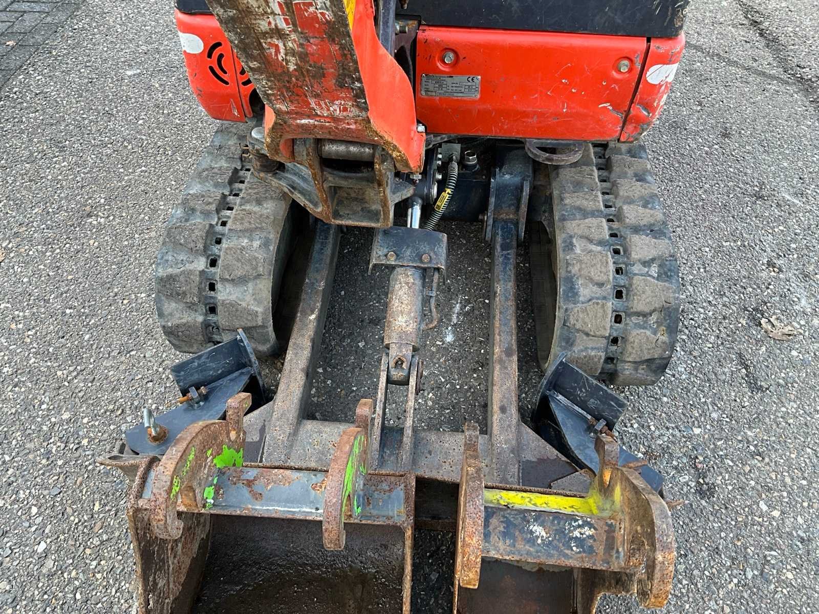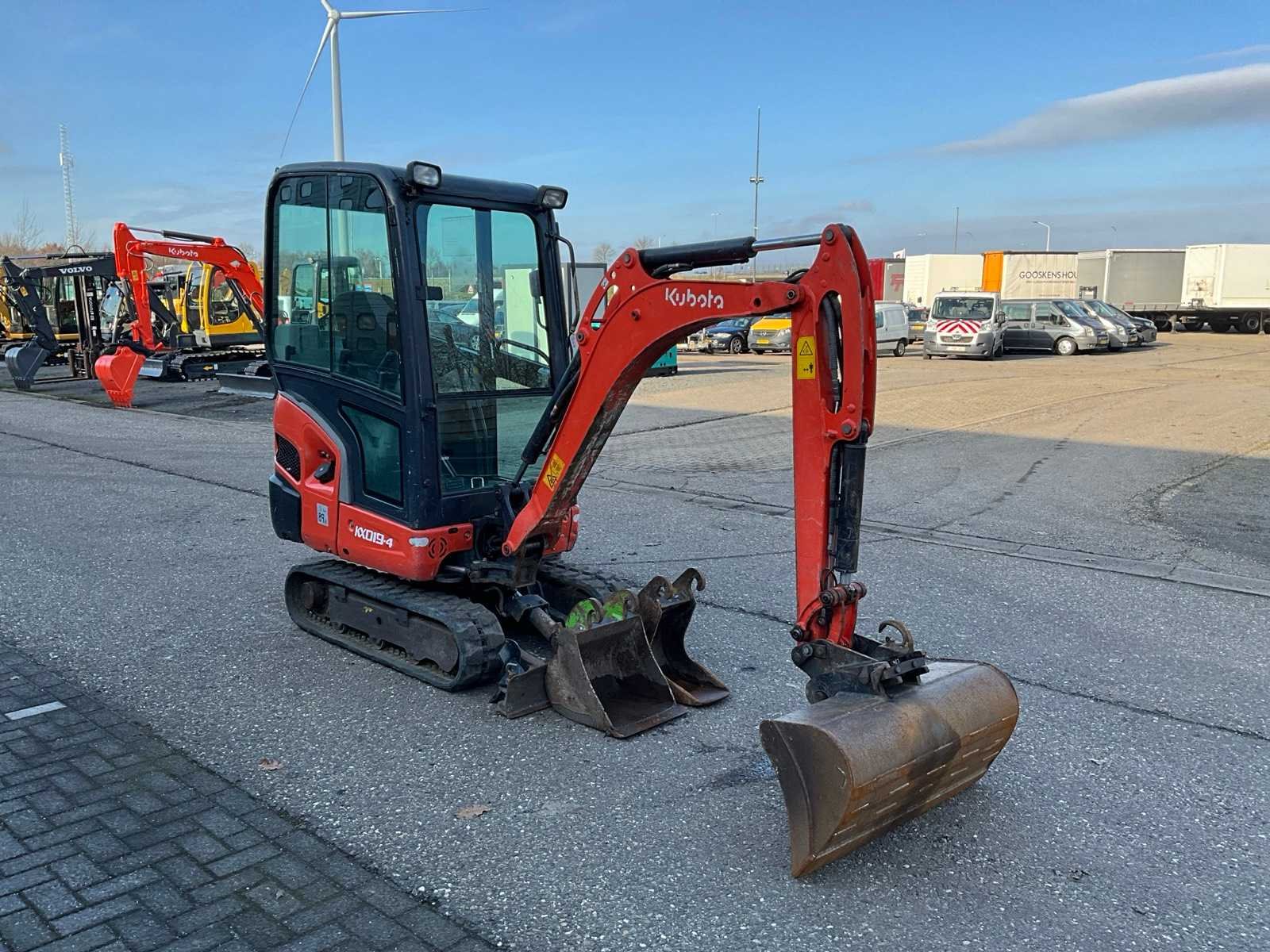 CW05 hydraulische snelwissel, CW05 slotenbak 1000mm, CW05 dieplepel 400mm, CW05 banaanbak 220mm, schuifblad met verbreders, zwenkgiek, extra hydraulische functie voorbereid, verstelbaar rijwerk, 2e rijsnelheid Merk: Kubota Type: KX019-4 Bouwjaar: 2016 Serienummer: 61450 Merk motor: Kubota D902 Motorvermogen (kW): 12kW Aantal cilinders: 3 Brandstof: Diesel Inclusief graafbak: Yes Rups breedte: 230mm Afgelezen urenstand: 4439 Totale afmeting L: 3700mm Totale afmeting Breedte: 1000mm Totale afmeting Hoogte: 2300mm