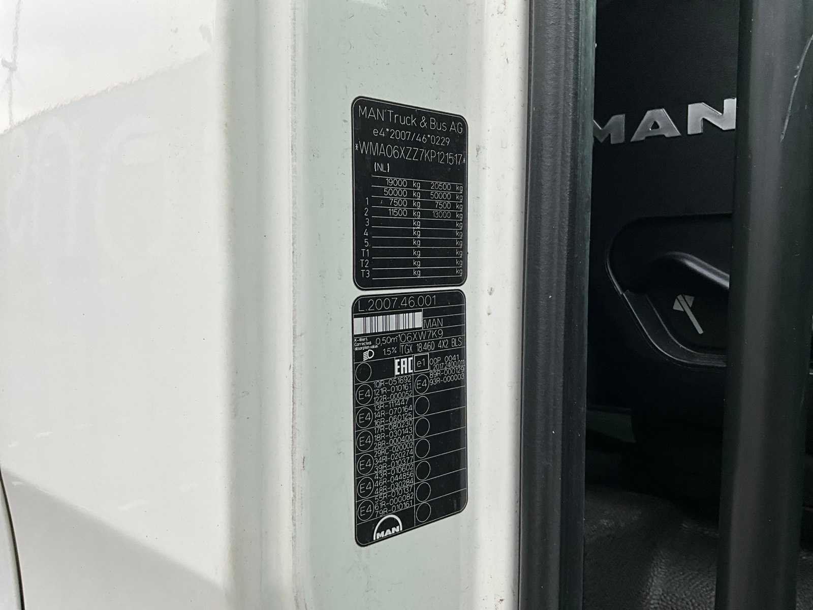 Elektrische ramen en spiegels, spiegel verwarming, stuurwiel bediening, airco, sper, digitale tachograaf, koelkast, slaapcabine, dubbele brandstoftank, start onderbreker Merk: MAN Type: TGX 18.460 Bouwjaar: 2018 Chassisnummer VIN: WMA06XZZ7KP121517 Cilinderinhoud: 12419cc Kilometerstand bij opname: 761776km Datum eerste toelating: 27-12-2018 Type transmissie: Automatisch Aantal assen: 2 Asconfiguratie: 4x2 Fuel Type: Diesel Aantal sleutels: 3 Emissieklasse: EURO6 Slaapcabine: true Eigen gewicht: 7951kg Nationaliteit documenten: Litouwen Kentekenpapieren compleet?: true Aantal zitplaatsen: 2