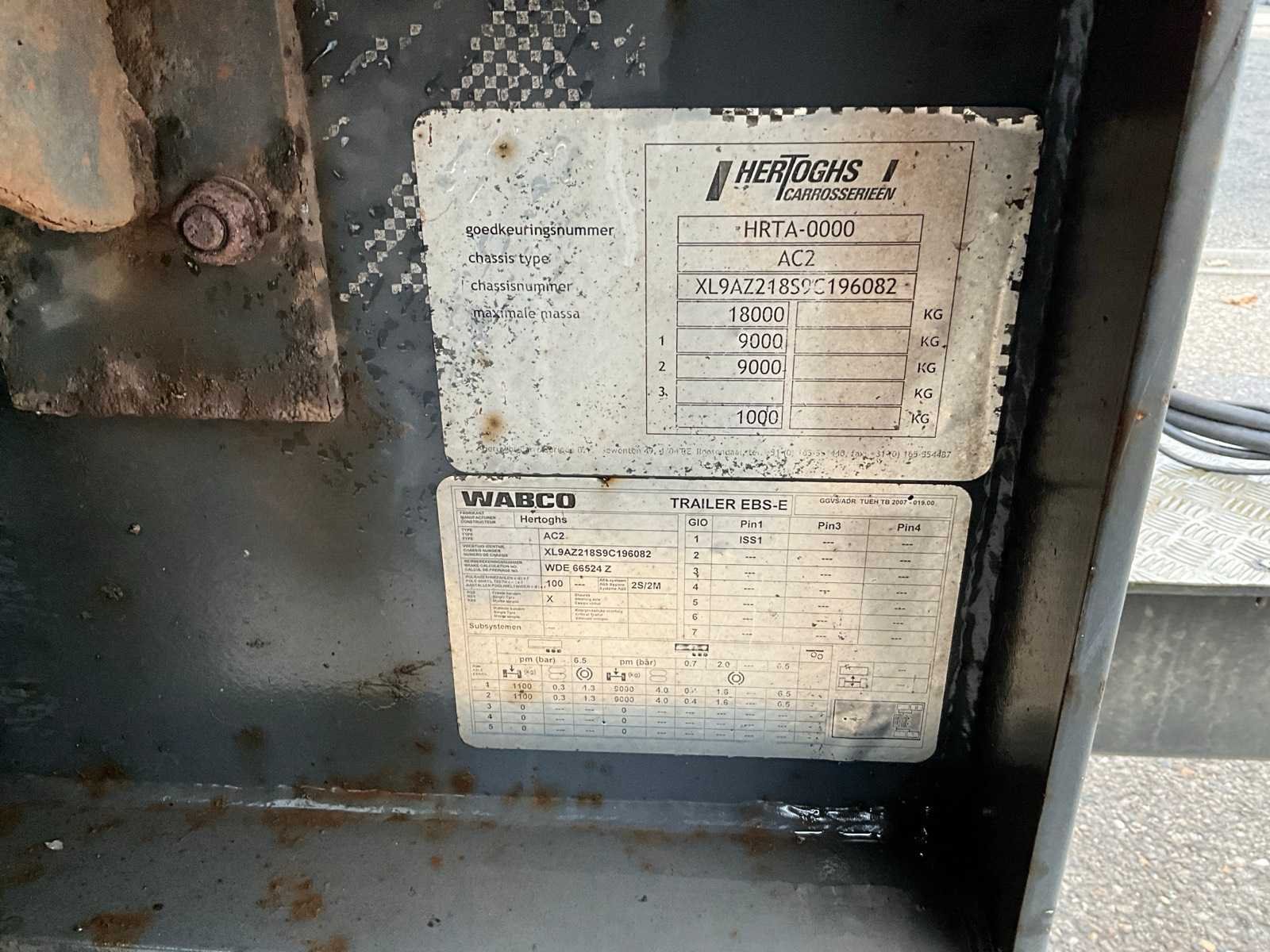 2x 9-Ton SAF as, schuifzeilen, schuifdak, binnenafmeting opbouw LxBxH 7300x2500x2700mm, hardhout vloer, lengte dissel trekoog tot voorkant trailer 2700mm, trekoog 50mm, Merk: Hertoghs Type: AC2 Type aanhangwagencarrosserie: Gesloten aanhangwagen Bouwjaar: 2009 Chassisnummer VIN: XL9AZ218S9C196082 Kenteken: 83-WD-KZ Datum eerste toelating (NL): 2009-02-12 Datum eerste toelating: 2009-02-12 APK vervaldatum: 2026-02-17 Aantal assen: 2 Laadvermogen: 14650kg Totale afmeting L: 10200mm Totale afmeting Breedte: 2600mm Totale afmeting Hoogte: 4000mm