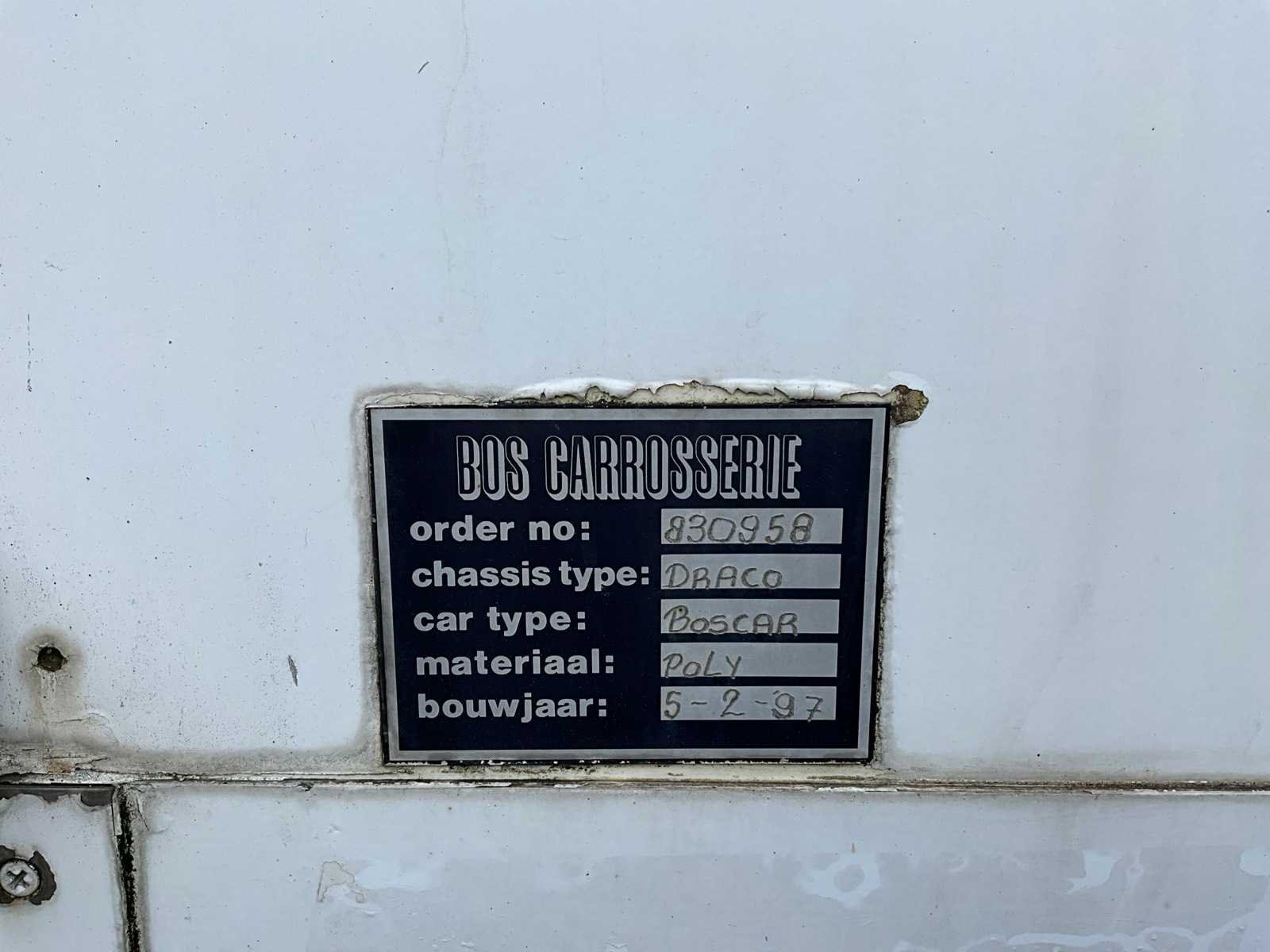 2x 7-polige stekker, ABS stekker, 400V stekker, Rema stekker, BOS opbouw, Dieseltank aanwezig tbv koelunit, 2x 10T ROR as, Achterste as gedwongen gestuurd, Lucht vering, trommelrem, Dhollandia Laadklep ( niet werkend ), Pneumatische roldeur, Automatisch smeersysteem Merk: draco Type: TZA 232 Bouwjaar: 1997 Chassisnummer VIN: XL9TZA232VD074008 Kenteken: OF-42-DG Datum eerste toelating (NL): 1997-02-20 Datum eerste toelating: 1997-02-20 APK vervaldatum: 2018-10-26 Aantal assen: 2 Laadvermogen: 21140kg Hydraulische laadklep: true Eigen gewicht: 10860kg Totale afmeting Breedte: 2600mm Totale afmeting Hoogte: 4000mm Zelf rijdend exporteren: Niet mogelijk