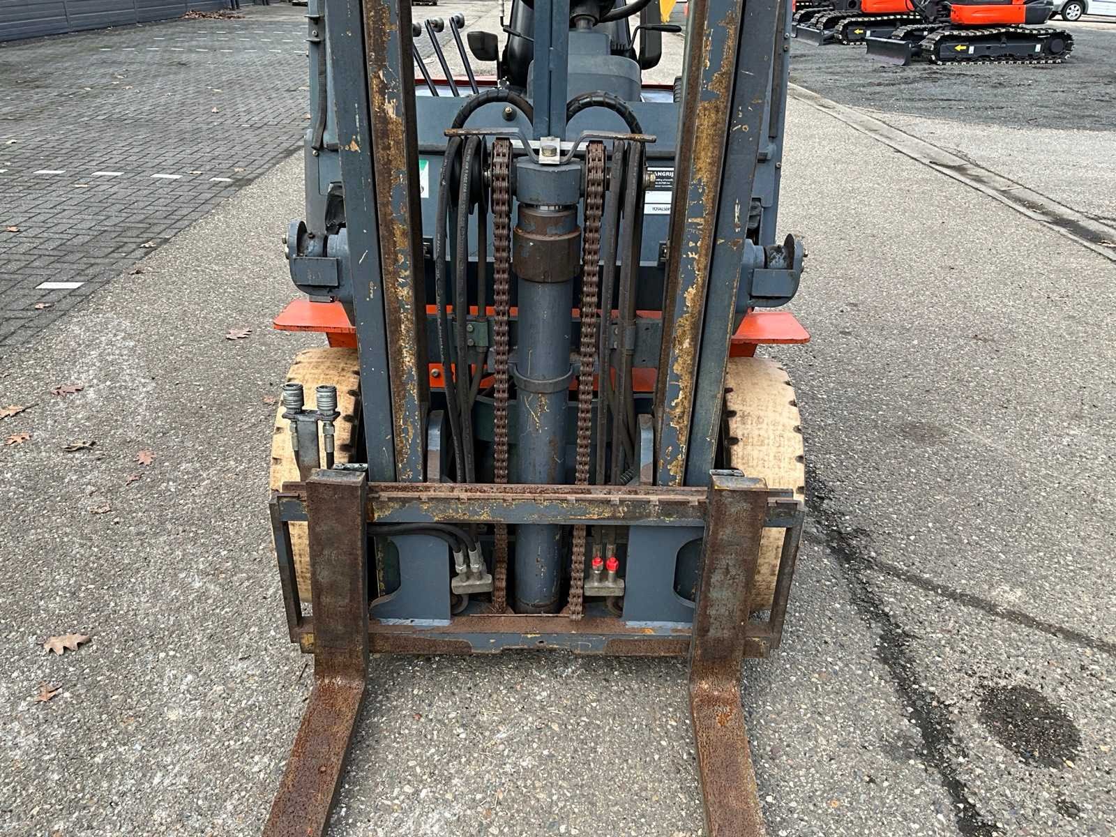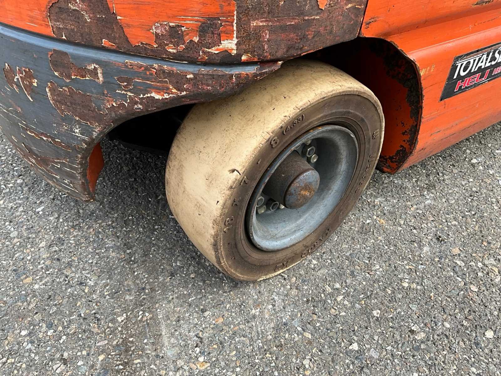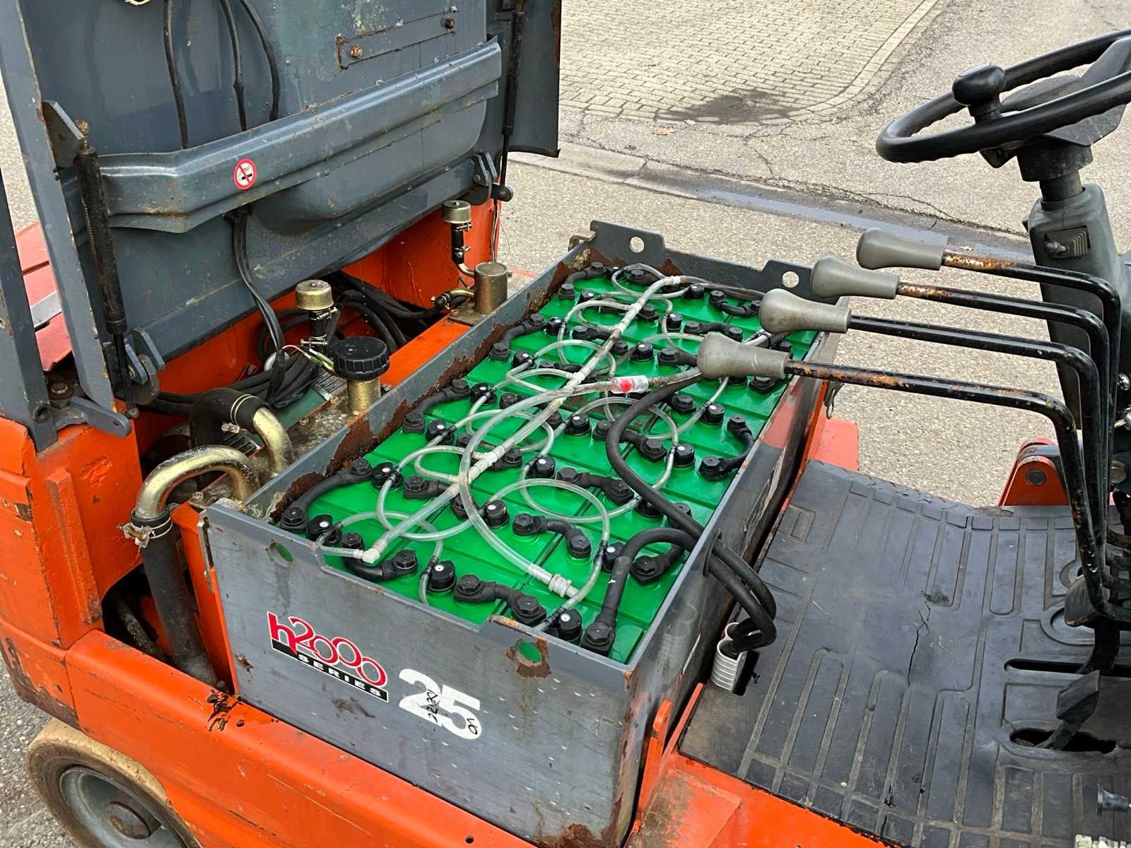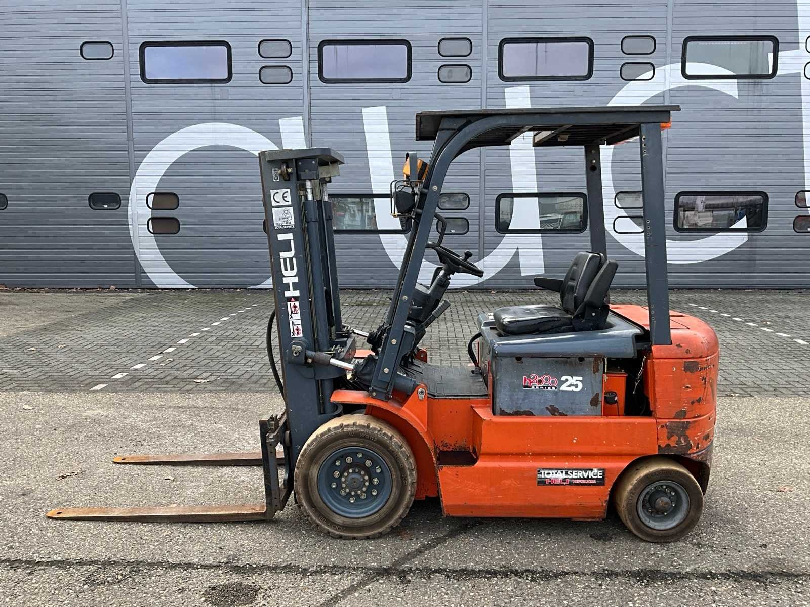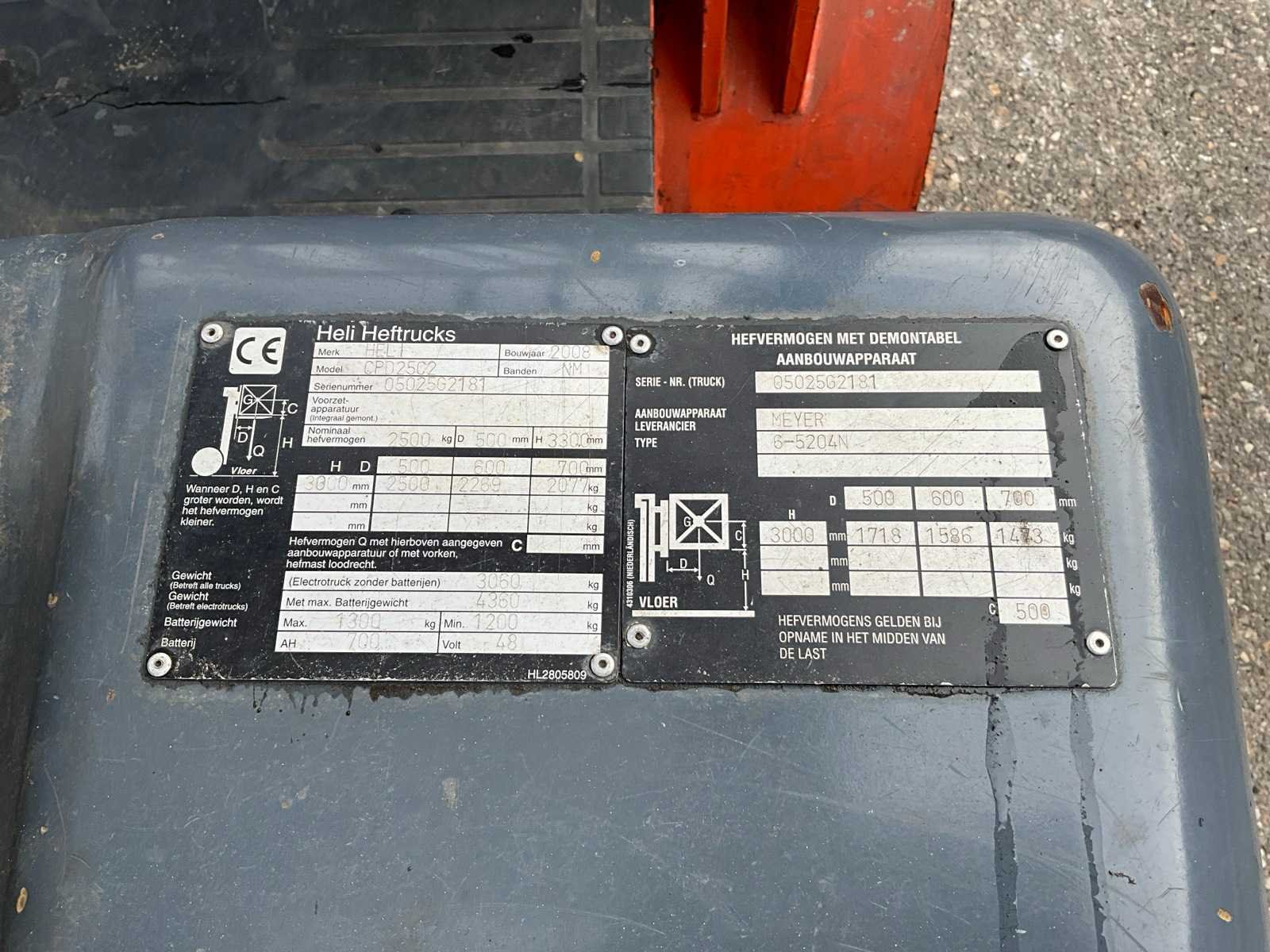 Non-marking banden, extra hydraulische functie, 48V accupakket Merk: Heli Type: CPD25C2 Bouwjaar: 2008 Serienummer: 05025G2181 Brandstof: Elektrisch Mast: Duplex Soort band: Volrubber banden Aantal wielen: 4 Afgelezen urenstand: 1318 Free-lift: true Duplex mast: true Eigen gewicht: 4360kg Hefvermogen: 2500kg Lepellengte: 1200mm Hefhoogte: 3000mm Minimale doorrijhoogte: 2150mm Totale afmeting L: 4000mm Totale afmeting Breedte: 1200mm Totale afmeting Hoogte: 2150mm