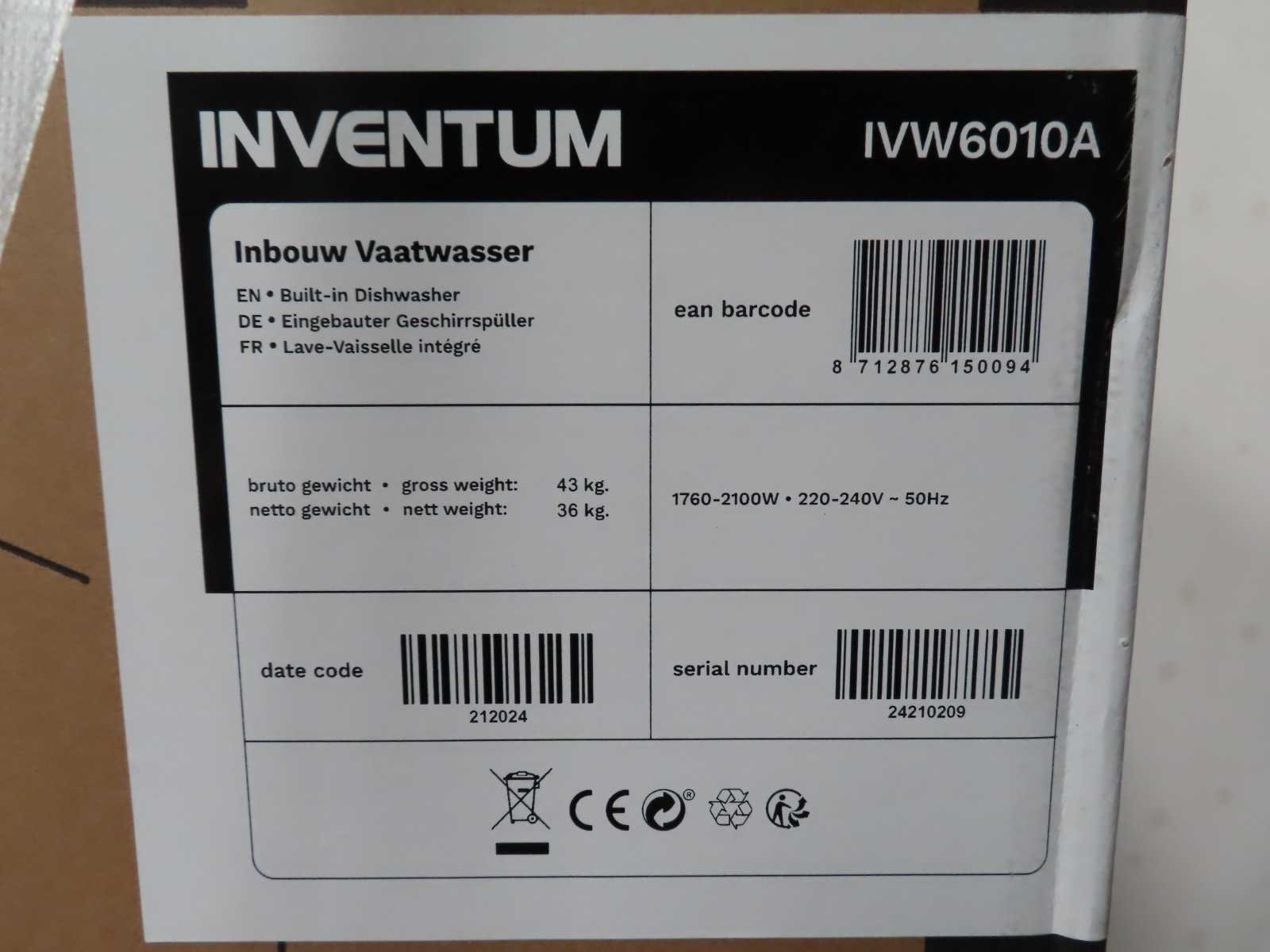 Inventum - ivw6010a - inbouw vaatwasser