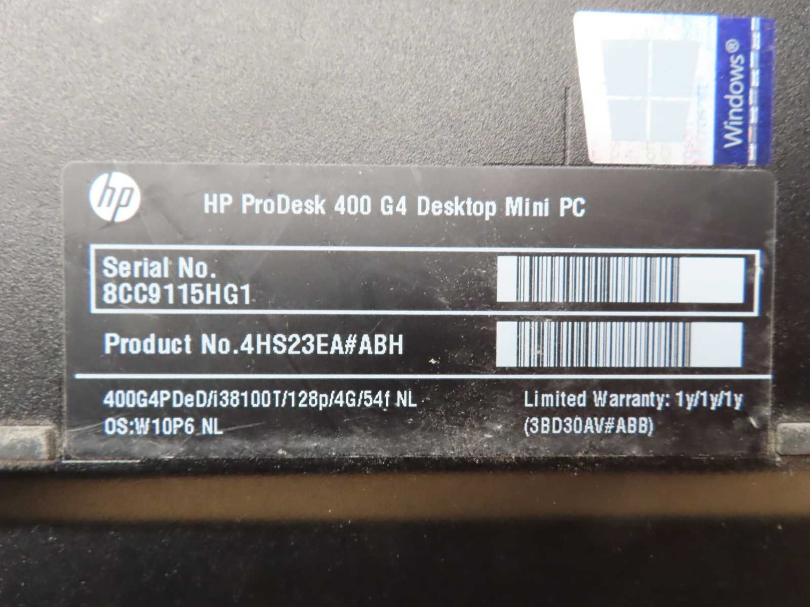 Met lader, zonder HDD Merk: HP Type: Prodesk 400 G4 Processor type: Intel Core i3 Gen 8