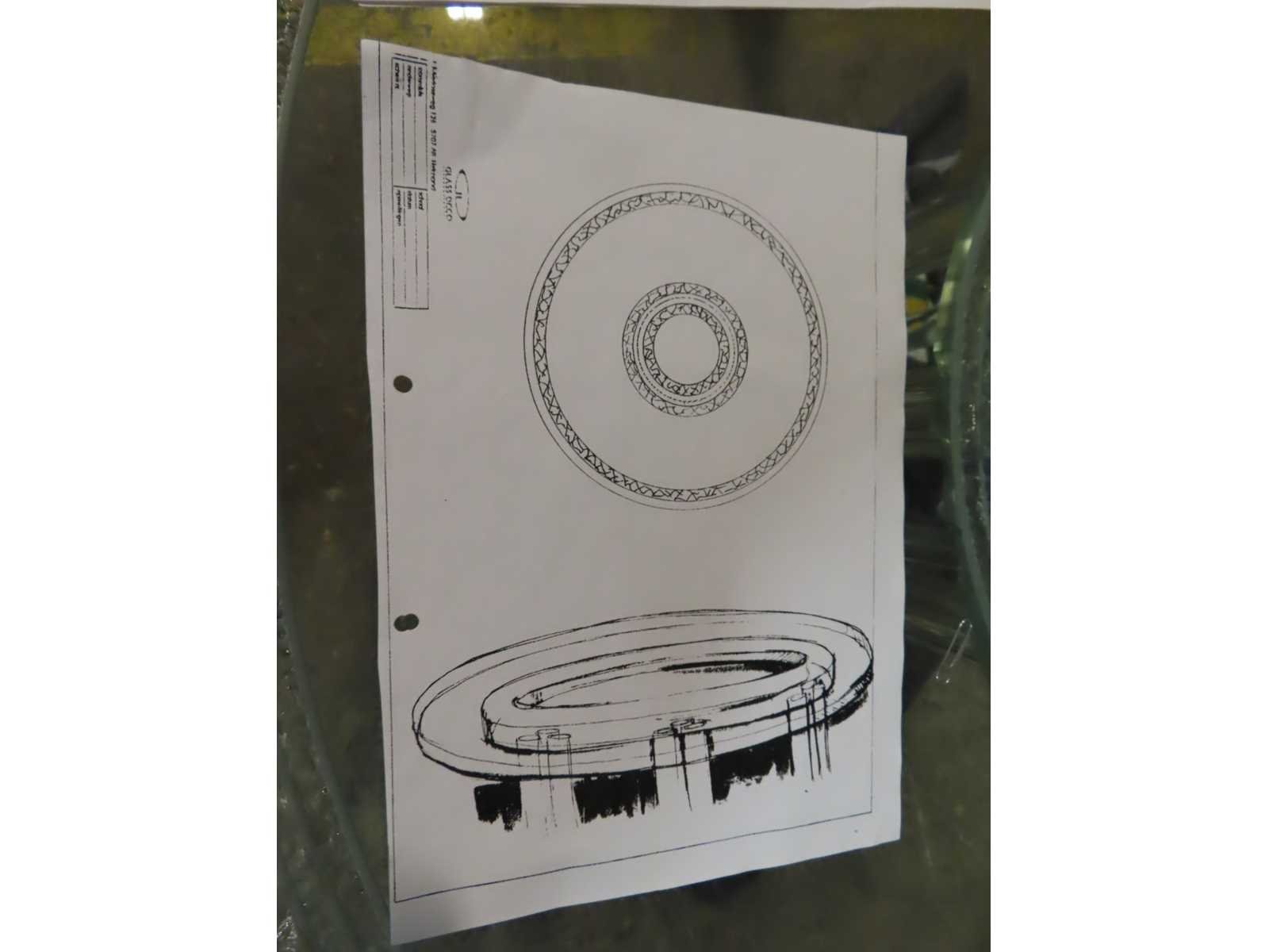 Aan onderzijde aan binnenring 3 butsjes (scherven meegeleverd) Merk: Glass Deco Breedte: 120cm