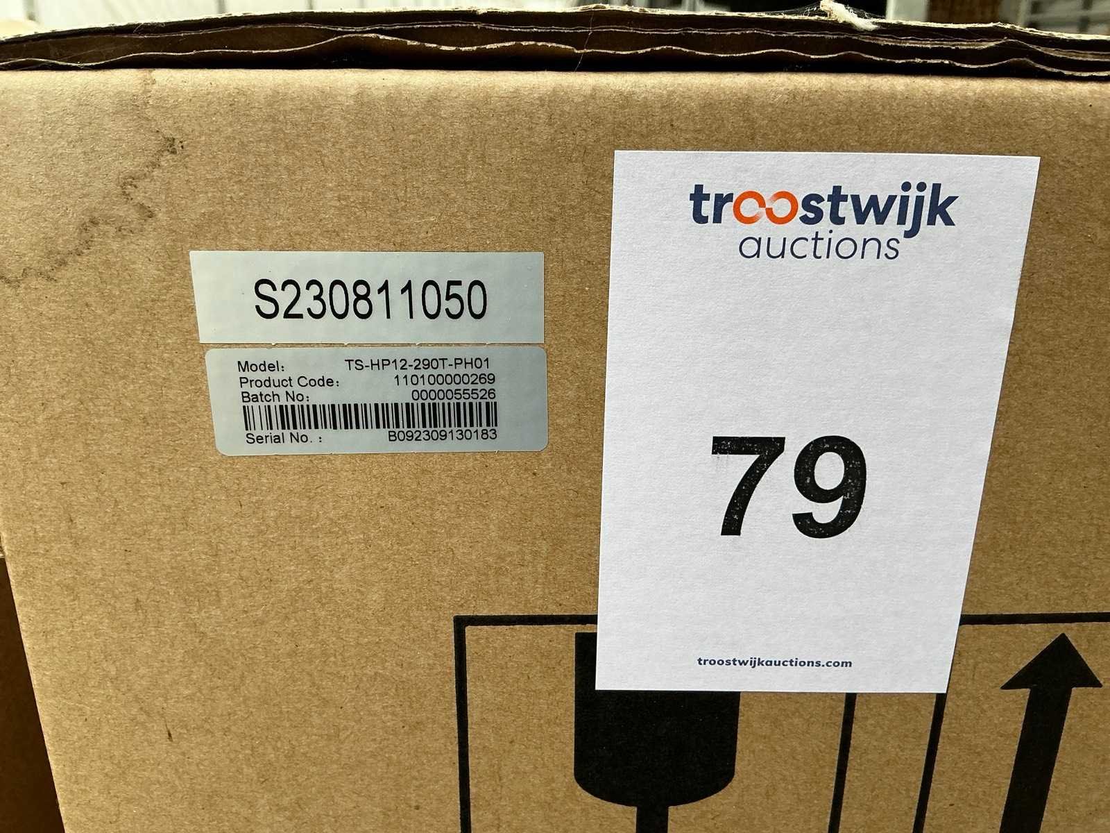 Serienummer: B092309130183. Dit betreft een verpakte unit. R290 refrigerant gas Energy Class: A++++ Heating + Cooling + Hot Water Full DC inverter compressor and fan motor Max outlet temperature: 70 O Wifi smart control Inverter water pump inside Modbus RS485 Full DC Inverter Technology Merk: Thuisstroom Model: TS-HP12-290T-PH01 Kleur: Zwart Gewicht: 175kg Lengte: 141cm Breedte: 52cm Hoogte: 96cm Materiaal: Metaal