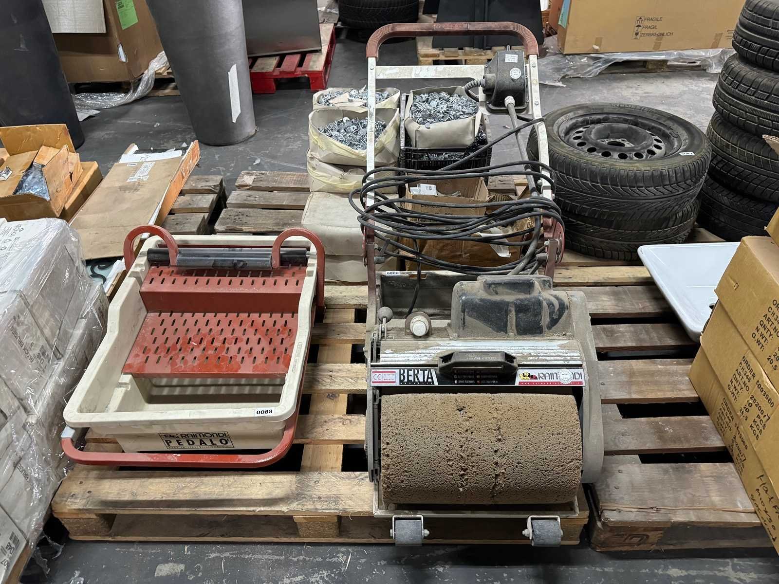 Twee verschillende sponsmachines van het merk Raimondi Machine 1: 495x700x380 mm, 40 liter. Stopaanwezig Machine 2: Berta elektrische spons, 540x900x1000 mm, 220 volt. Een elektrische spons machine t.b.v. reinigen van voegen Merk: Raimondi Type: Sponsmachine