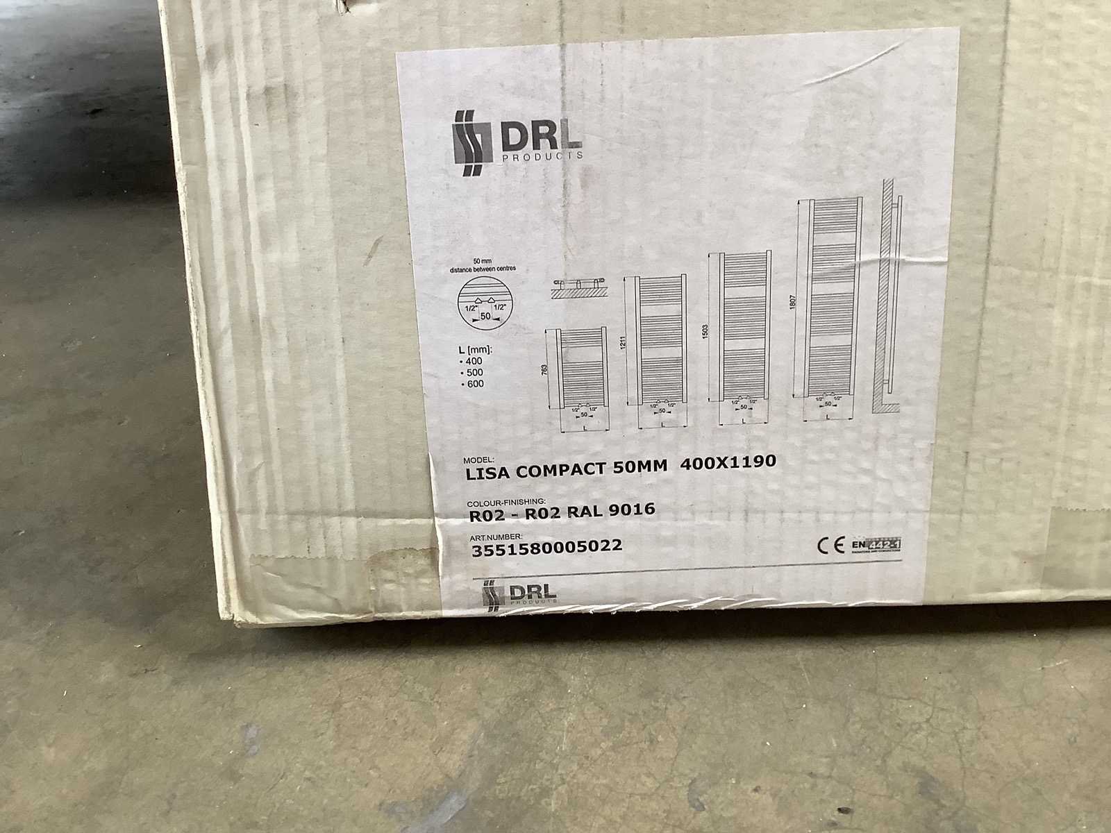Nieuw in doos Merk: Drl Model: Lisa compact Product type: Handdoekradiator Kleur: Ral 9016 Lengte: 40cm Breedte: 5cm Hoogte: 119cm