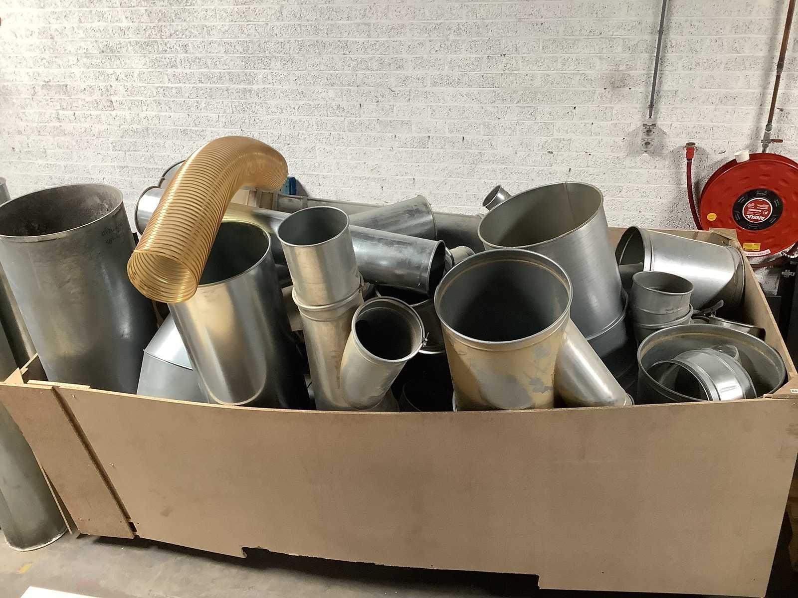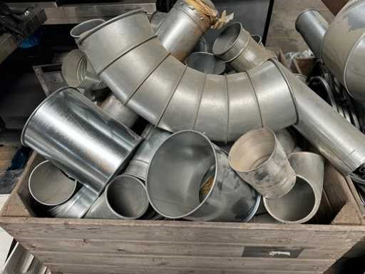 Dit kavel bestaat uit een partij onderdelen voor een afzuiging. Er zijn verschillende maatvoeringen aanwezig. Daarbij zijn er ook een aantal verloop stukken aanwezig Materiaal: RVS en plastic