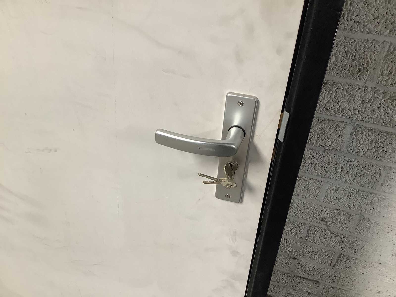 Stompe deur met post met sleutel Klinkhoogte Heeft beschadiging zie foto Binnendeur: true Afmeting h: 2170mm Afmeting b: 898mm Hout: true Dikte: 113mm
