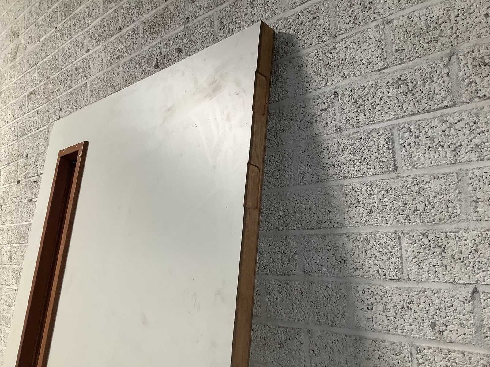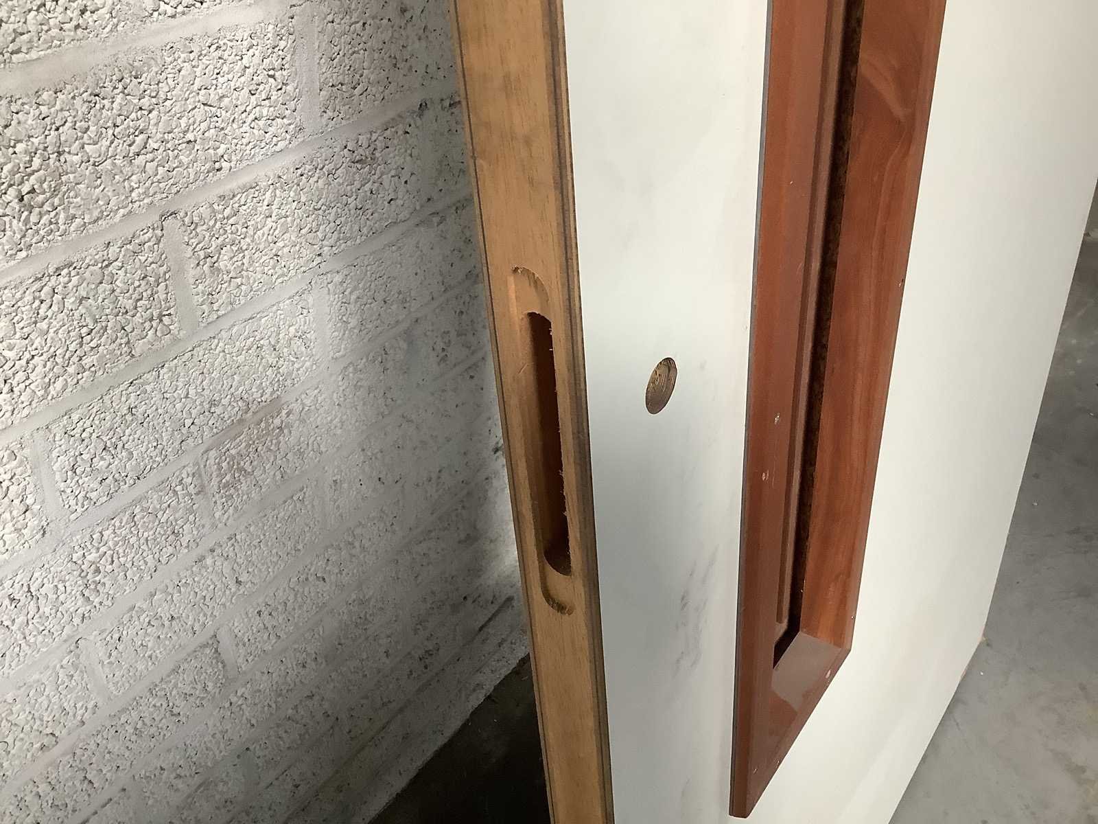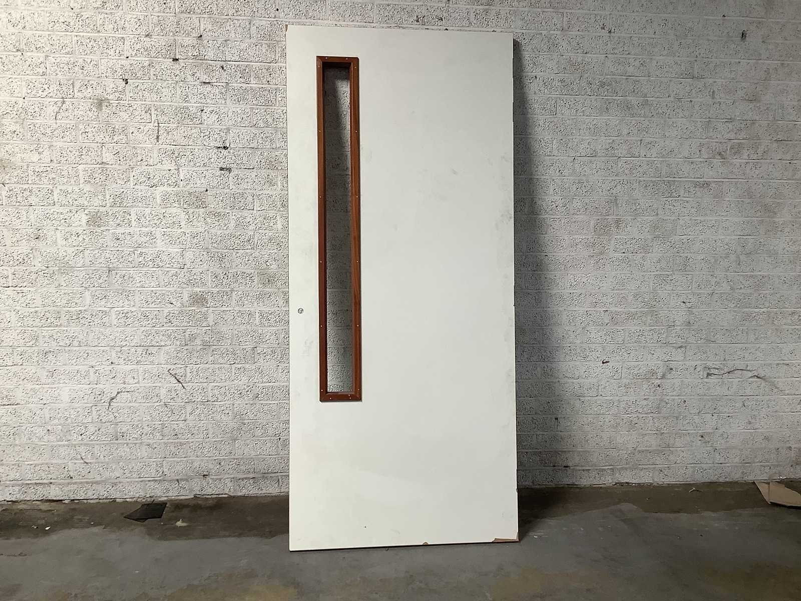 Stompe deur met ruitvak van 149 x 15 cm Klinkhoogte 105 cm Let op! Extreem zwaar. Binnendeur: true Afmeting h: 2324mm Afmeting b: 103mm Hout: true Dikte: 46mm