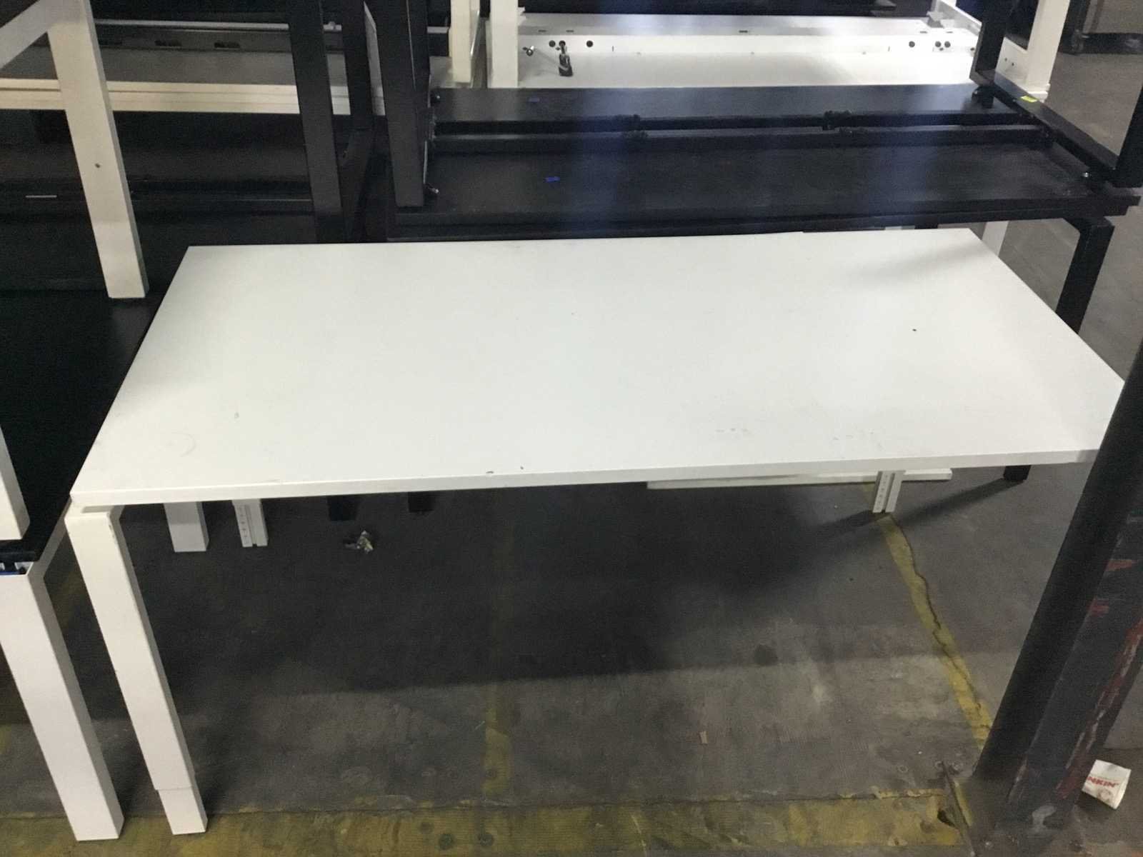 In hoogte verstelbaar. Blad lichte beschadiging zie foto Type: Bureau Kleur: Wit Lengte: 160cm Breedte: 80cm Hoogte: 80cm