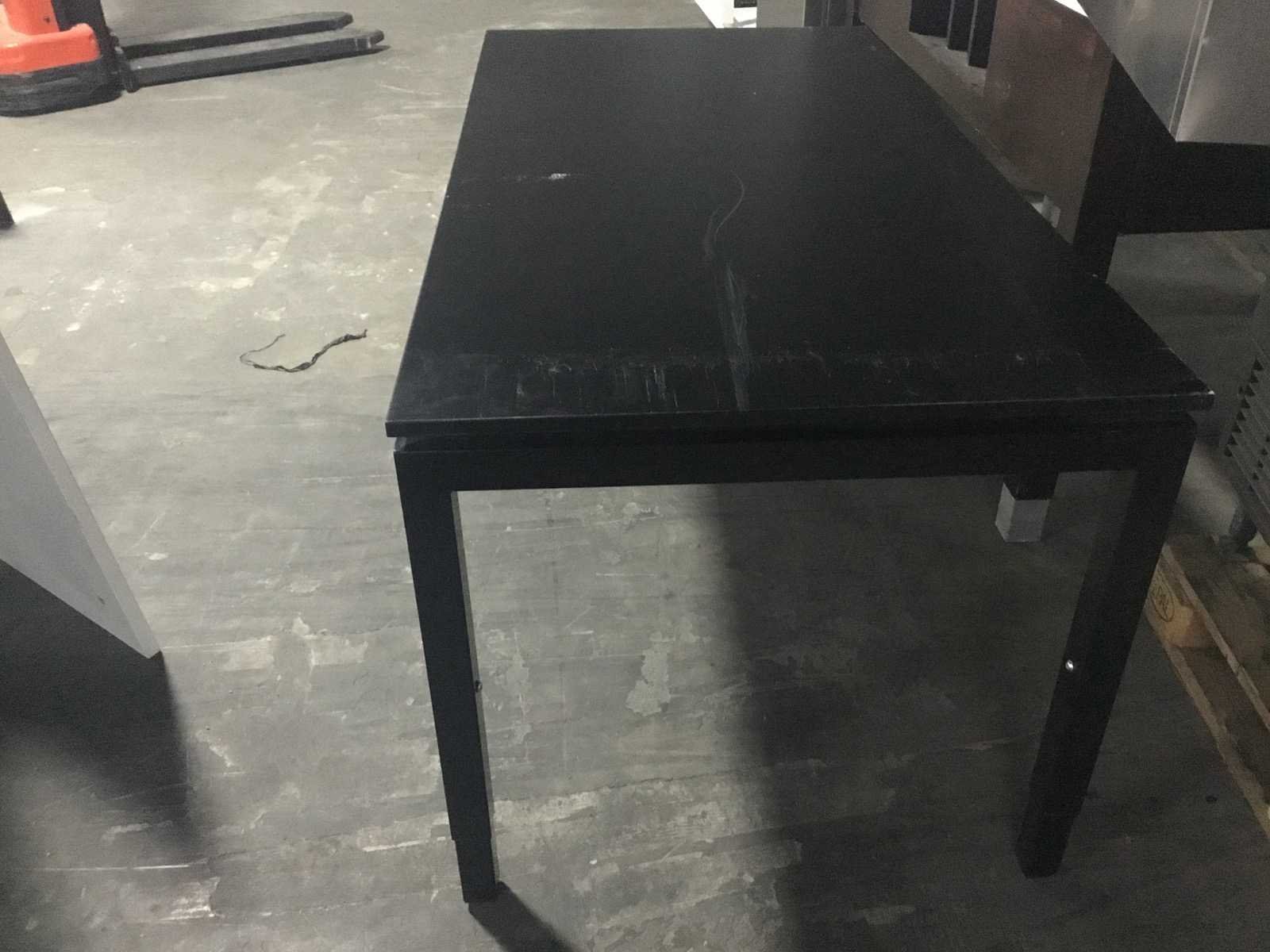 In hoogte verstelbaar. Blad lichte beschadiging zie foto Type: Bureau Kleur: Zwart Lengte: 160cm Breedte: 80cm Hoogte: 80cm