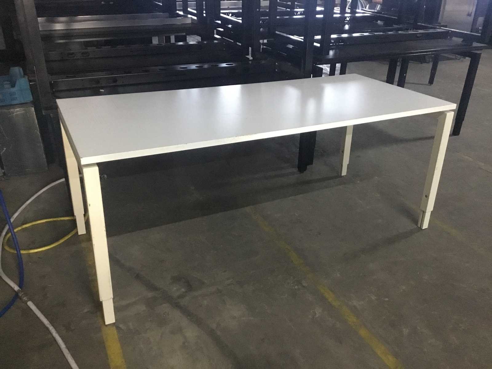 In hoogte verstelbaar. Blad licht beschadigd zie foto Type: Bureau Kleur: Wit Lengte: 180cm Breedte: 80cm Hoogte: 80cm