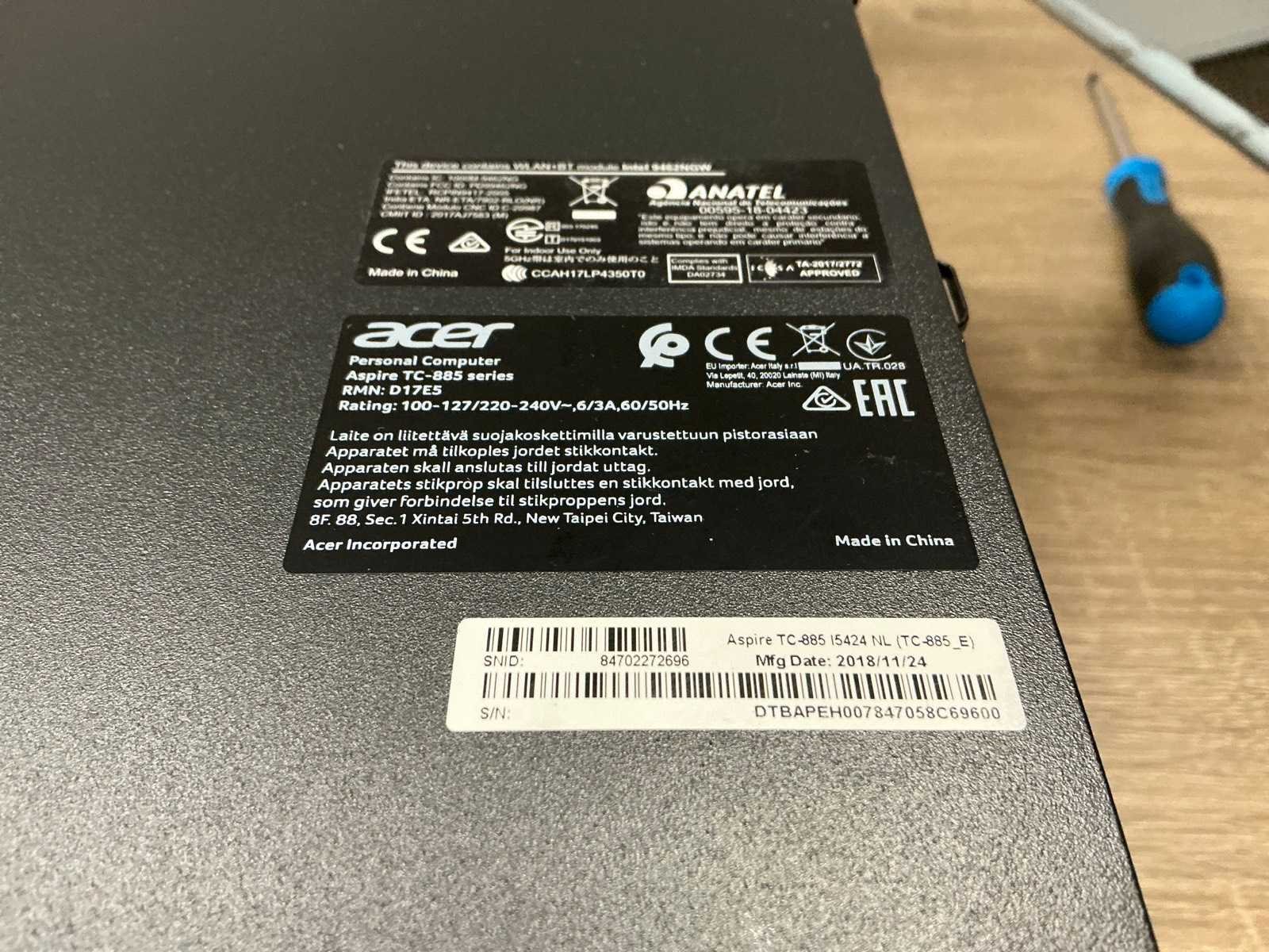 Merk: Acer Type: Aspire TC-885 Processor type: Intel(R) Core(TM) i5-8400 CPU @ 2.80GHz,x86_64 @ 4GHz, logical CPUs: 6, Speed: 4000MHz Besturingssysteem: Geen Type datadrager: SSD/SATA 256.1GB Serienummer: DTBAPEH007847058C69600 RAM Geheugen Type: 4GB Zonder voedingskabel: true