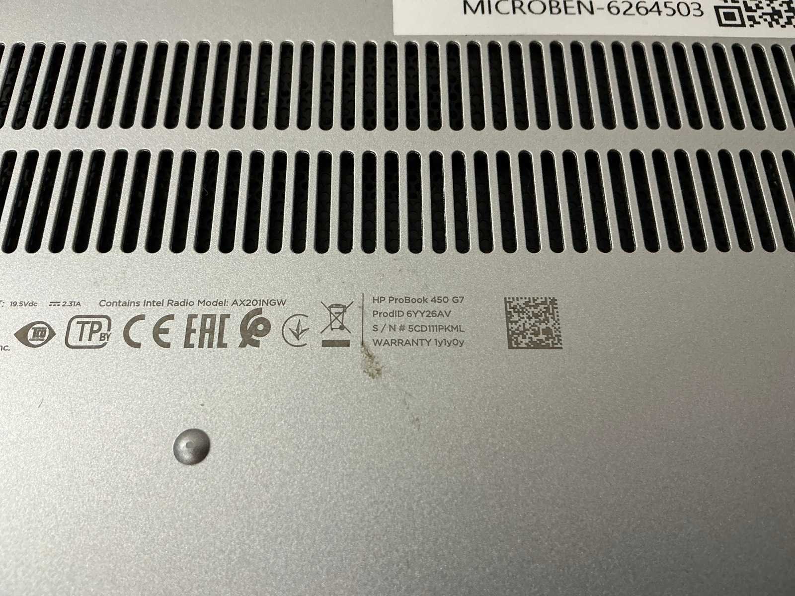 Merk: HP Type: HP ProBook 450 G7 Serienummer: 5CD111PKML Processor type: Intel(R) Core(TM) i5-10210U CPU @ 1.60GHz,x86_64 @ 4.2GHz, logical CPUs: 8, Speed: 4200MHz RAM Geheugen Type: 8GB Type datadrager: SSD/NVME 256.1GB Besturingssysteem: Geen Zonder adapter: true Wifi: true Bluetooth: true Webcam: true