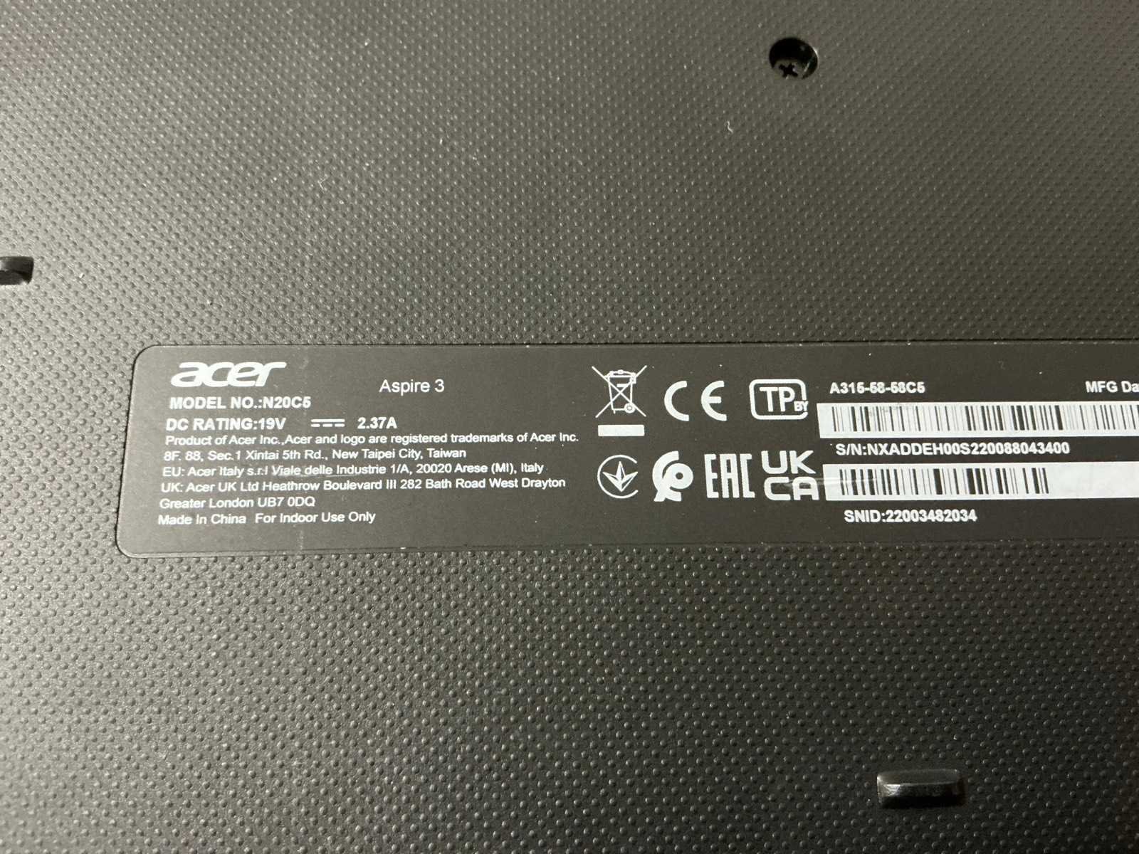 Merk: Acer Type: Aspire 3 (A315-58) Processor type: Intel core i5-1135g7 RAM Geheugen: 16GB Type datadrager: 512gb nvme Besturingssysteem: Geen Met adapter: true Wifi: true Bluetooth: true Webcam: true